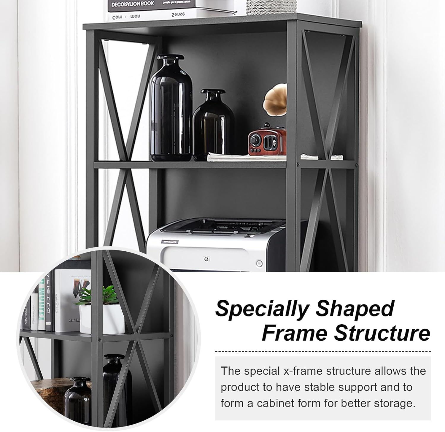 - [Bookshelf With Cabinet Design]: The tall bookcase has a back panel design than the standard open bookcase, which makes the industrial bookshelf more integral. It also allows the freestanding bookshelf to be placed off the wall without worrying about items falling off the back, making it more practical and more aesthetically pleasing.
