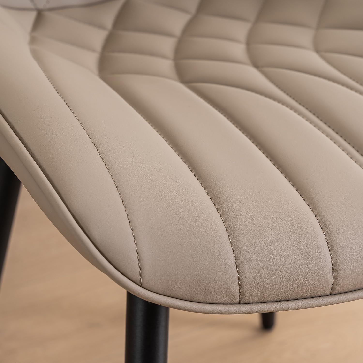 YOUNUOKE Dining Chairs Set of 2 Mid Century Modern Kitchen Chair Comfortable Upholstered Faux Leather Dinner Chairs for Kitchen Dining Room, Khaki