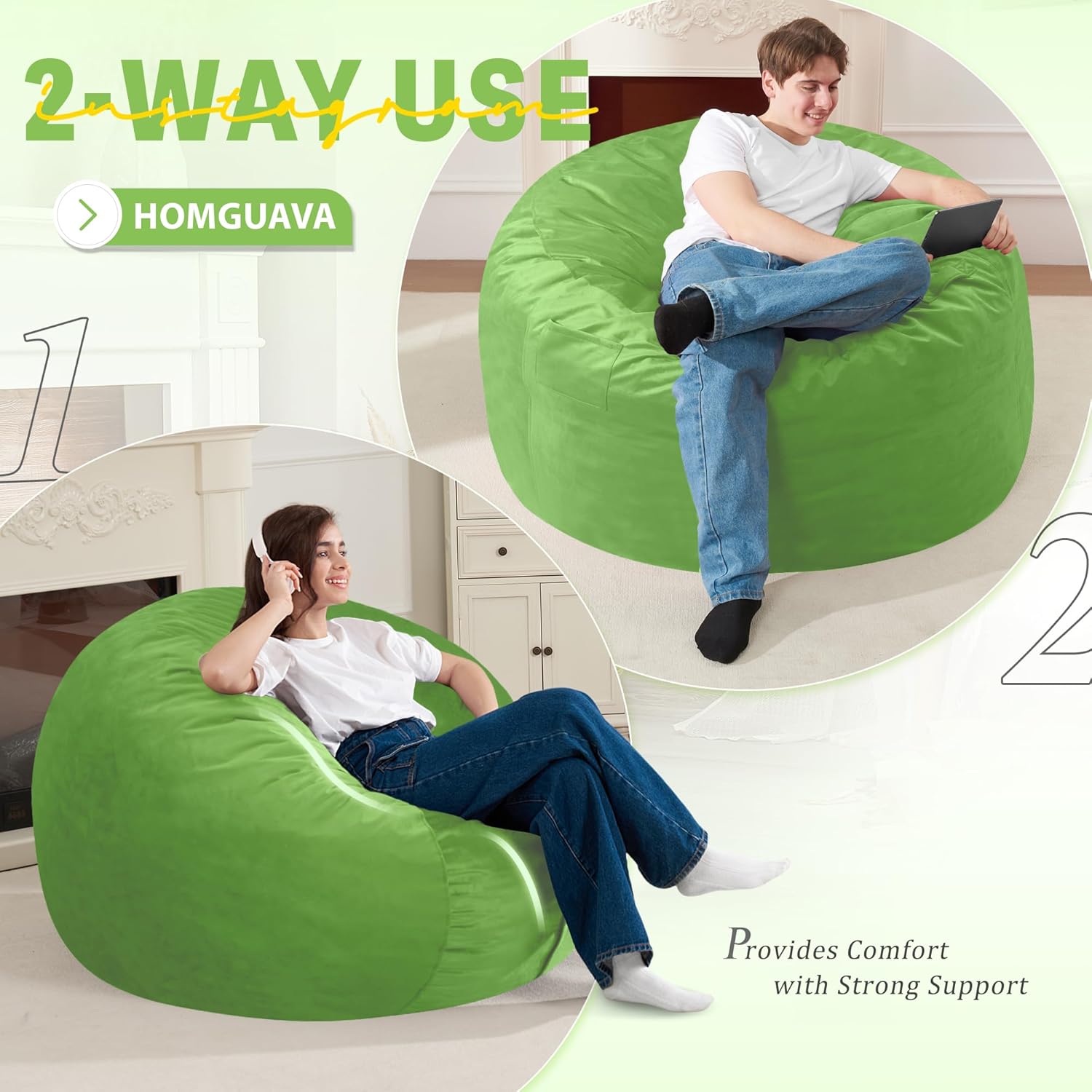 Homguava 3FT Bean Bag Chair: 3' Bean Bags with Memory Foam Filled, Large Beanbag Chairs Soft Sofa with Dutch Velvet Cover-Lime