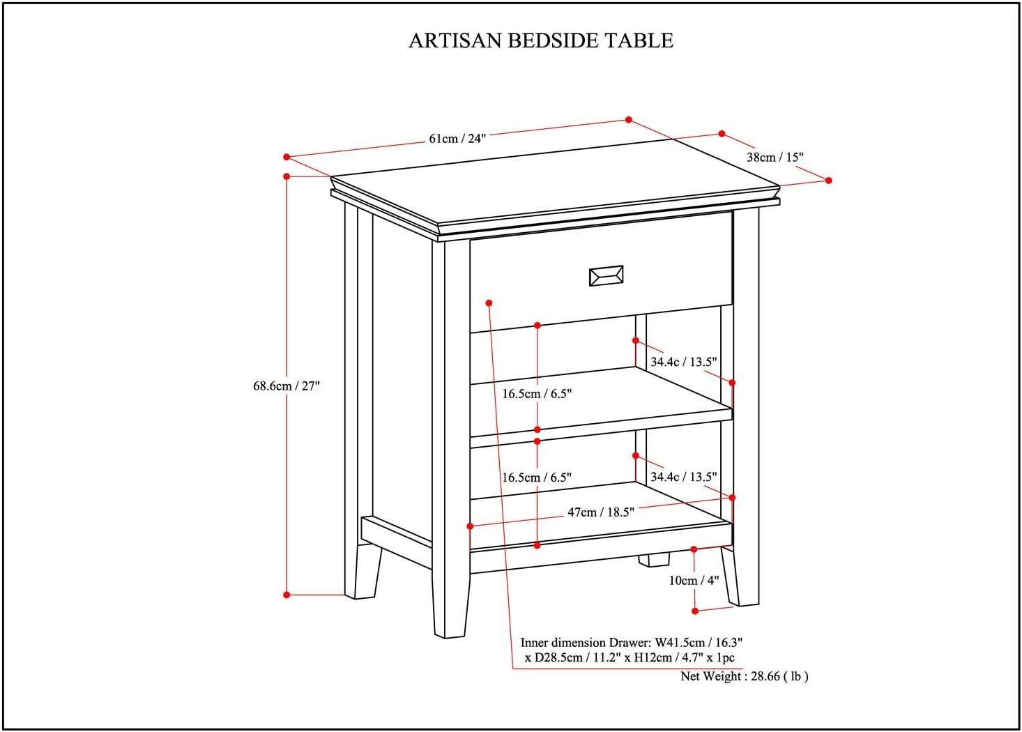 - Product Dimensions : 15"D x 24"W x 27"H