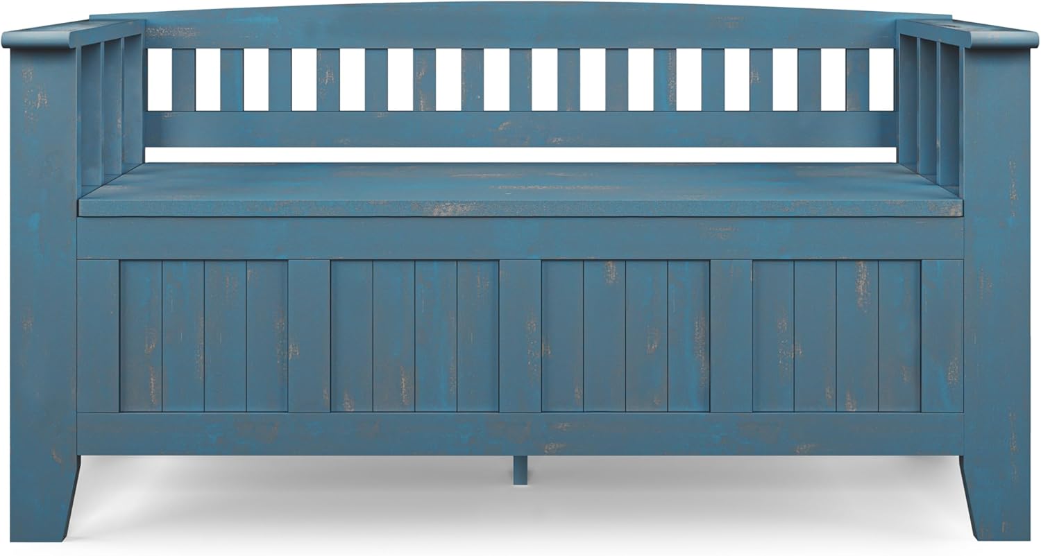 SIMPLIHOME Acadian Entryway Storage Bench - 48 inch Wide Solid Wood Hallway Seat in Distressed Coastal Blue, Transitional Bench for Entryway or Living Room with Lift-Up Lid and Spacious Storage