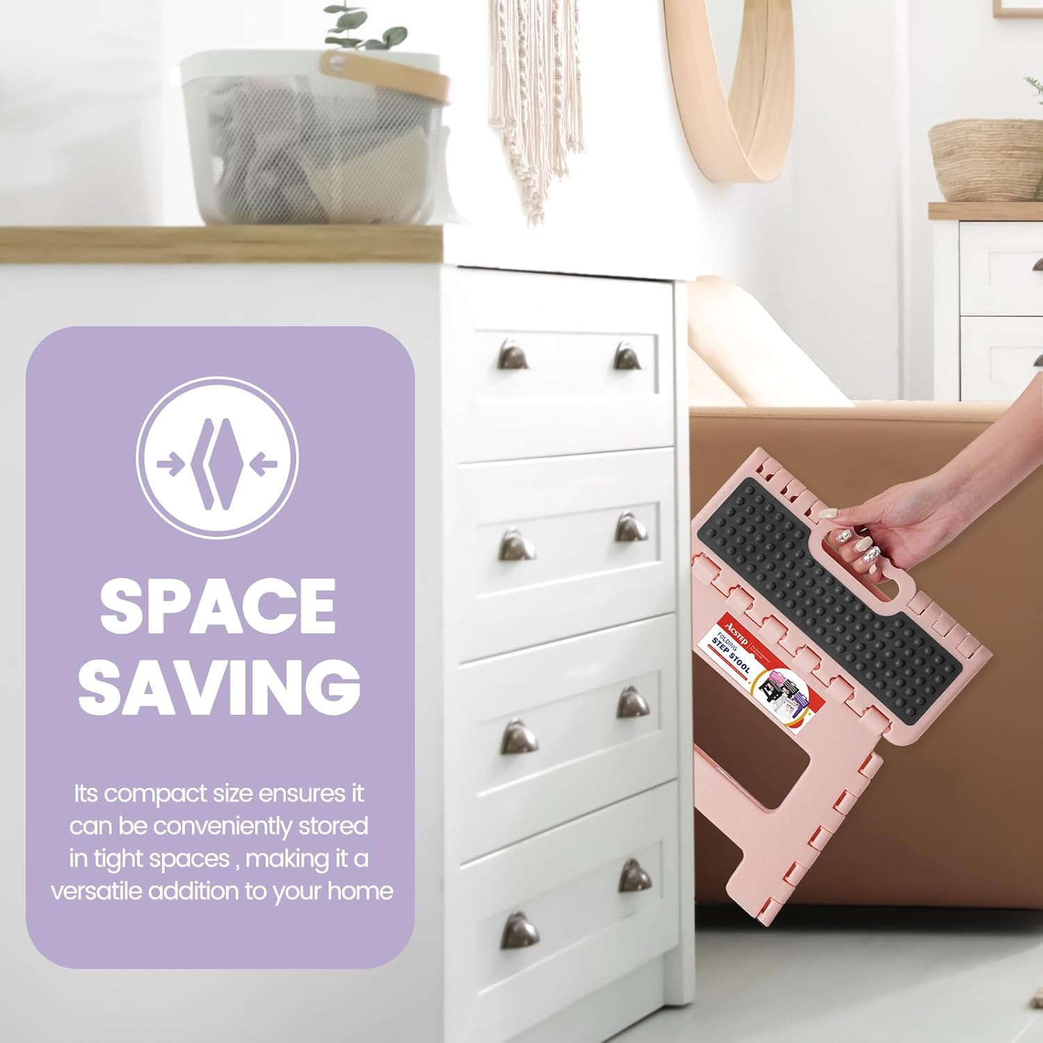 - Versatile Use: The kids step stool are ideal for kitchens, bedrooms, bathrooms, and more. Use step stools for reaching high shelves, organizing wardrobes, or stepping safely in the bathroom. With endless possibilities, this folding step stool is a must-have tool for every corner of your home.