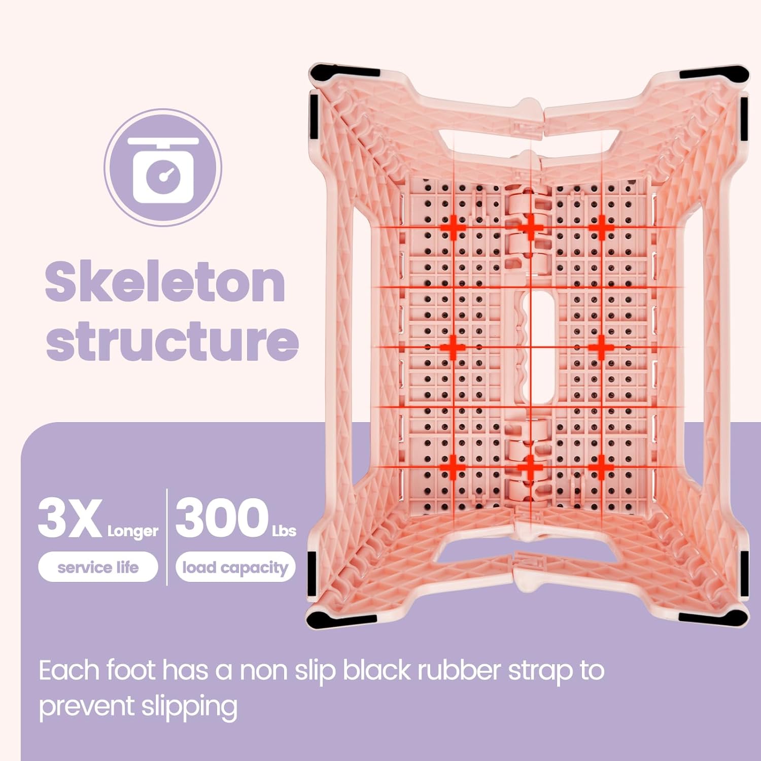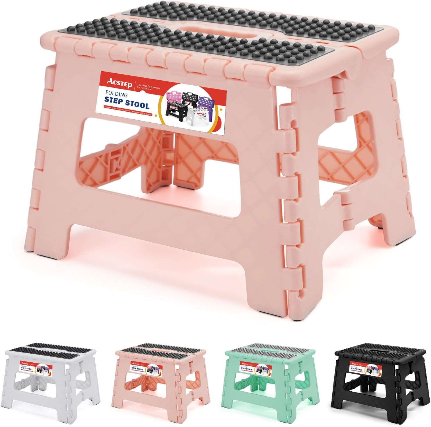 ACSTEP 9 Inch Folding Step Stool 300 LB Capacity Non Slip Foot Stool with Handle Plastic Foldable Step Stools for Kids Stepping Stool for Bathroom Black Small Step Stool (1 PC Pink)