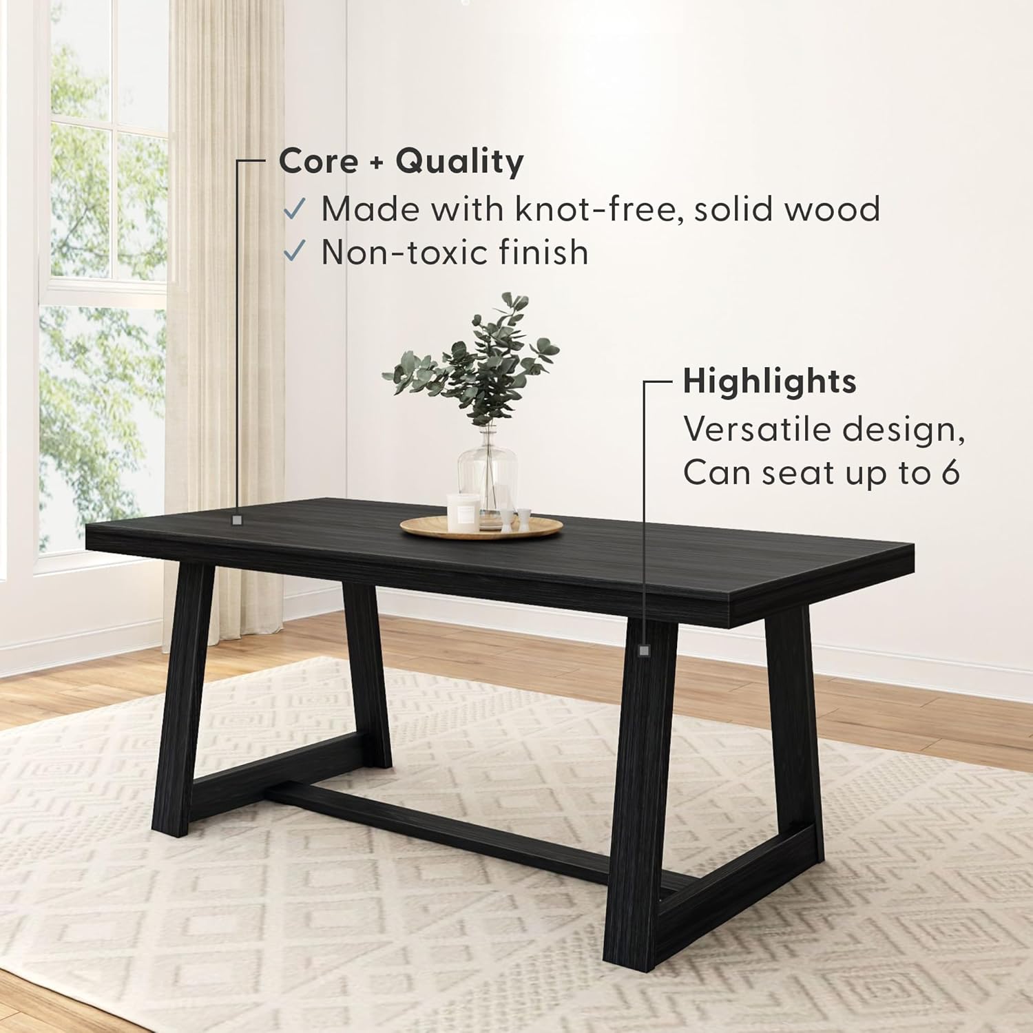 Plank+Beam 72 Inch Farmhouse Dining Table, Solid Wood Rustic Kitchen Table, Large Wooden Rectangular Dinner Table for Dining Room, Home Office, Living Room Furniture, Easy Assembly, Black Wirebrush
