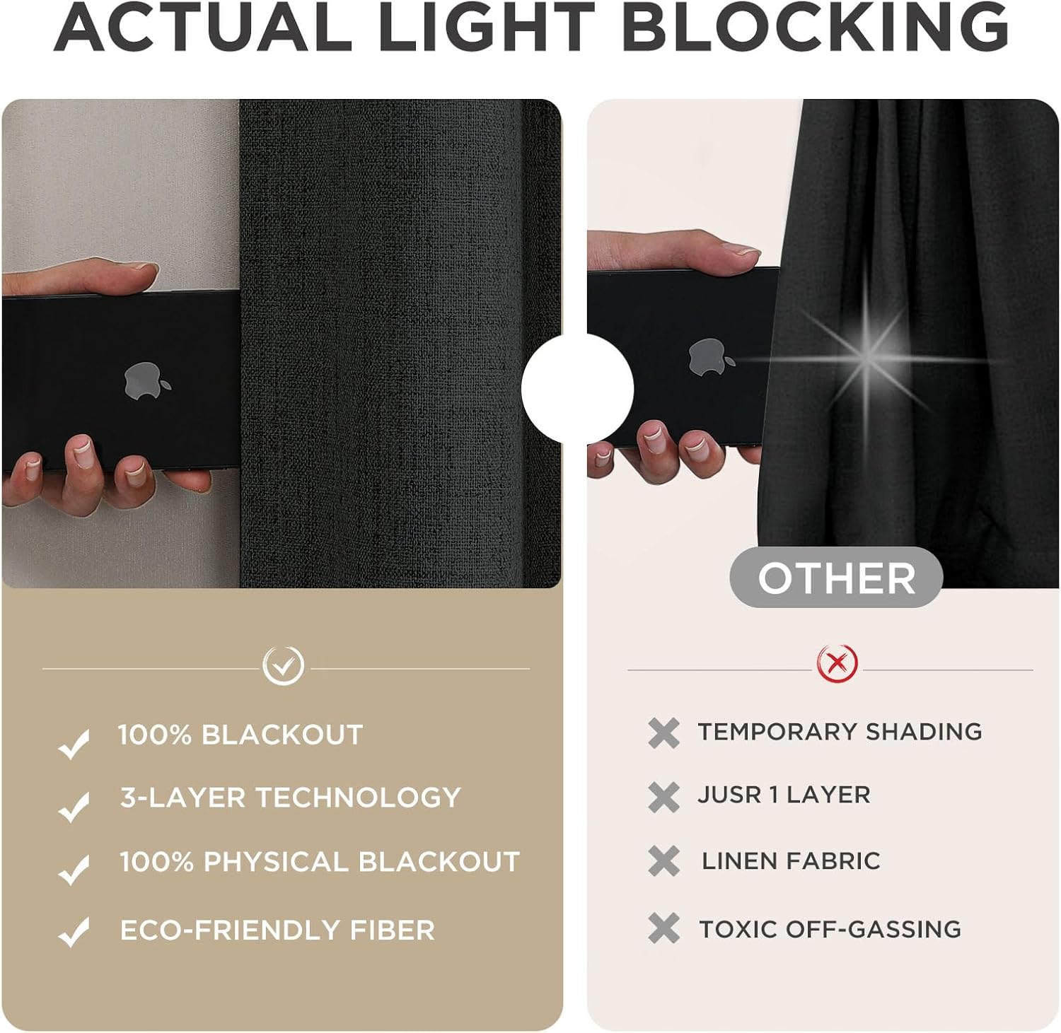Joydeco 100% Blackout Curtains for Bedroom - Natural Linen Curtains 37" W x 96" L, Thermal Insulated 2 Panels Black Light Blocking Drapes, Rod Pocket & Back Tabs