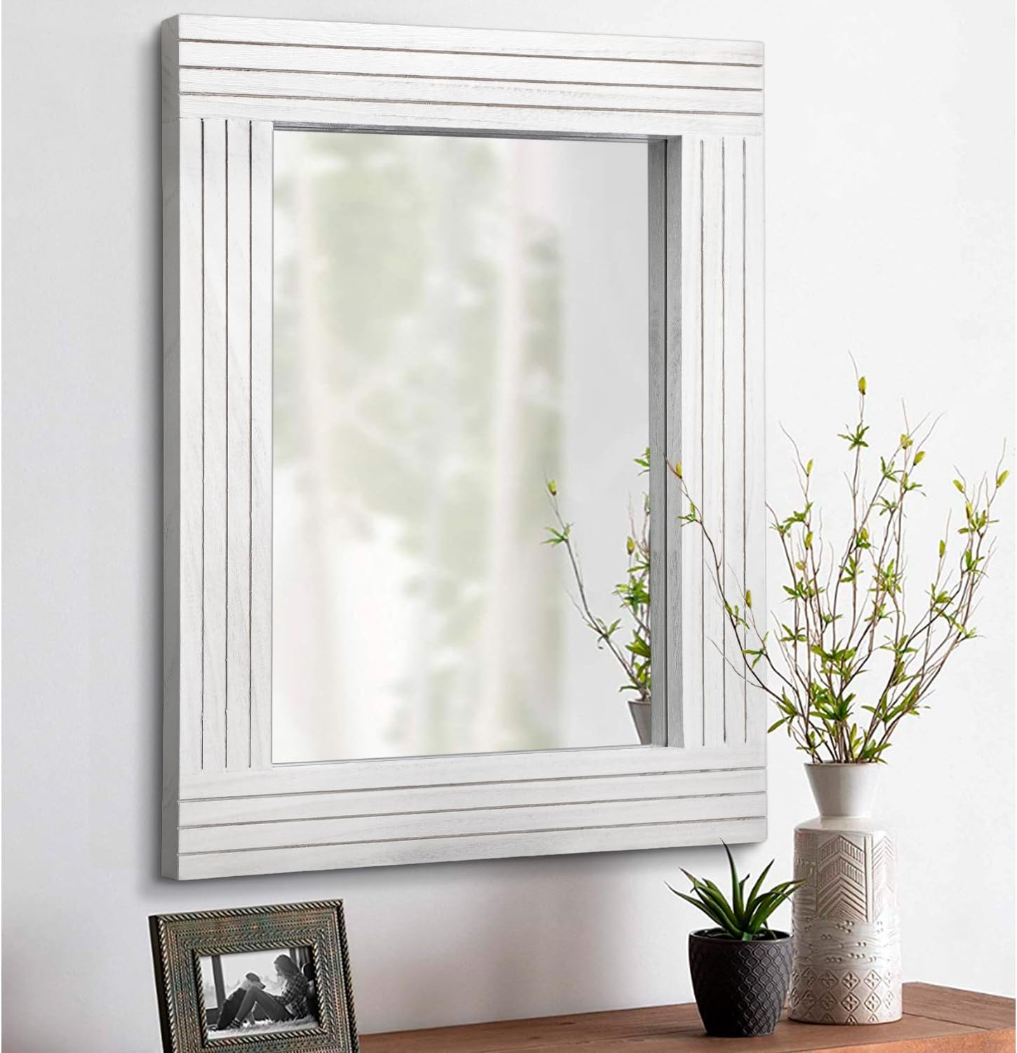 Rustic Mirror for Wall Wooden Frame Rectangular Antique Wall Mirror Decor Farmhouse Bedroom Dresser Bedroom Entryway Mirror Large White 20" x 16"