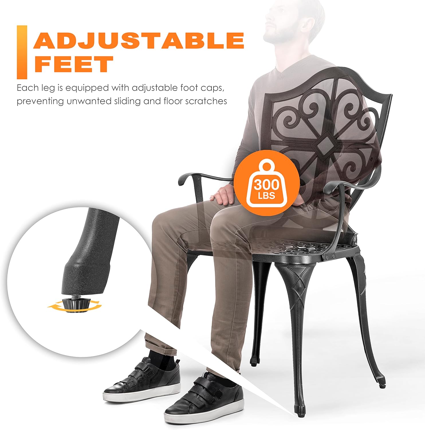 - EASY ASSEMBLE: Easily assembled with hardware packs of this 3 pieces cast aluminum patio bistro sets, adjustable feet keep outdoor patio set stability anytime and anywhere and prevent unwanted sliding and floor scratches
