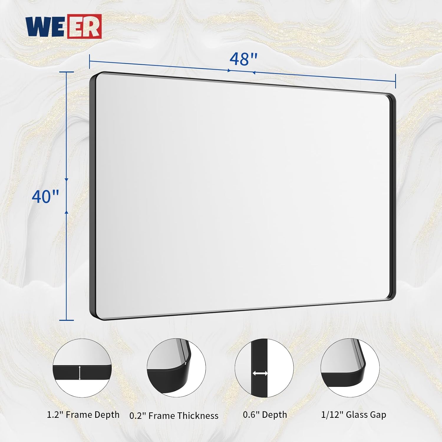 - 【Shatterproof Tempered Glass】: All WEER matte black mirror for bathroom is built with 4MM tempered glass which is shatter-proof, burst-proof and more safer to use. The shatterproof film is the important layer that will not splash into pieces when it's broken;