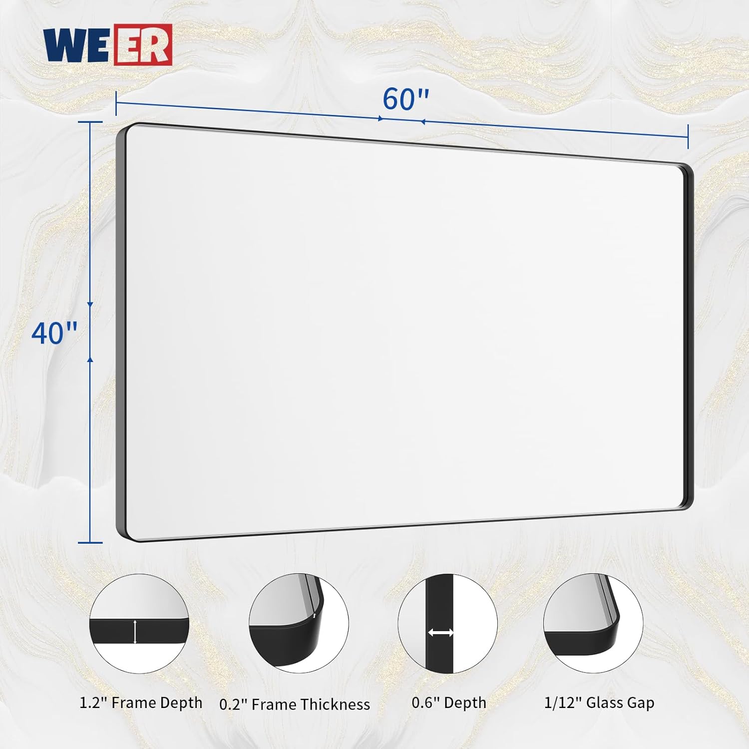 - 【Shatterproof Tempered Glass】: All WEER matte black mirror for bathroom is built with 4MM tempered glass which is shatter-proof, burst-proof and more safer to use. The shatterproof film is the important layer that will not splash into pieces when it's broken;