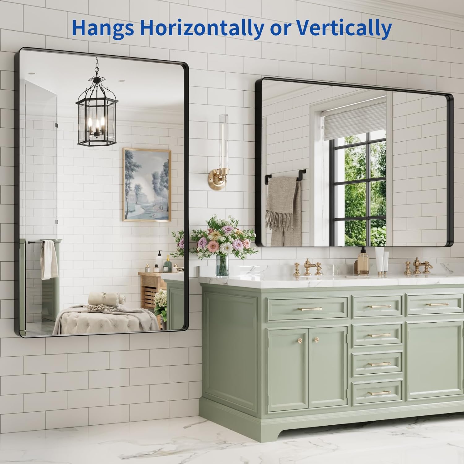 - 【Secure & Easy To Install 】: With the Z-bar wall brackets, it's easy to install the mirror and no need to align small holes like other mirrors. The bracket is sturdy enough to support the weight of the mirror. The bathroom mirror can be hung vertically or horizontally. Mounting hardware included;