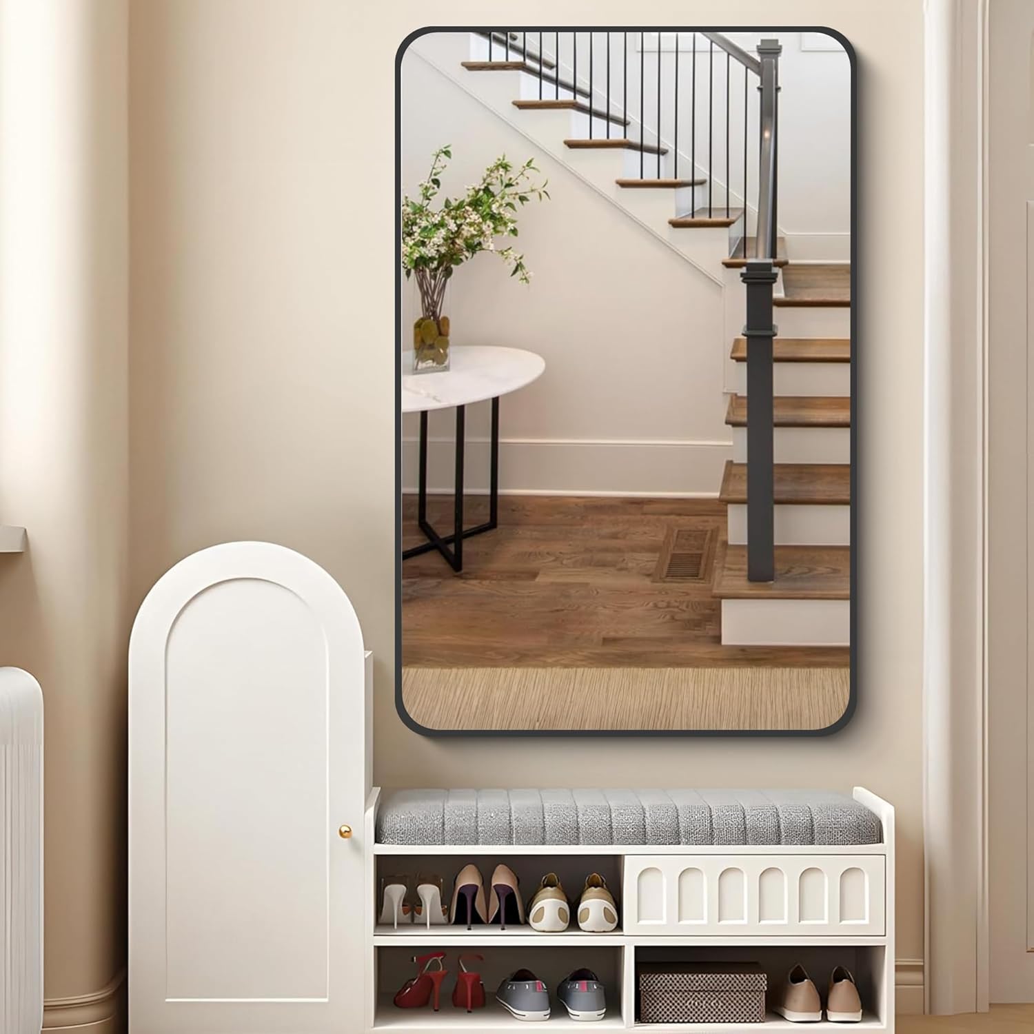 - Rounded Corner Design:The rounded corner rectangular mirror makes your bathroom more elegant and classy, which especially attracts your eyes. Ideal for decorative bathroom and make the space more brighter and more spacious.