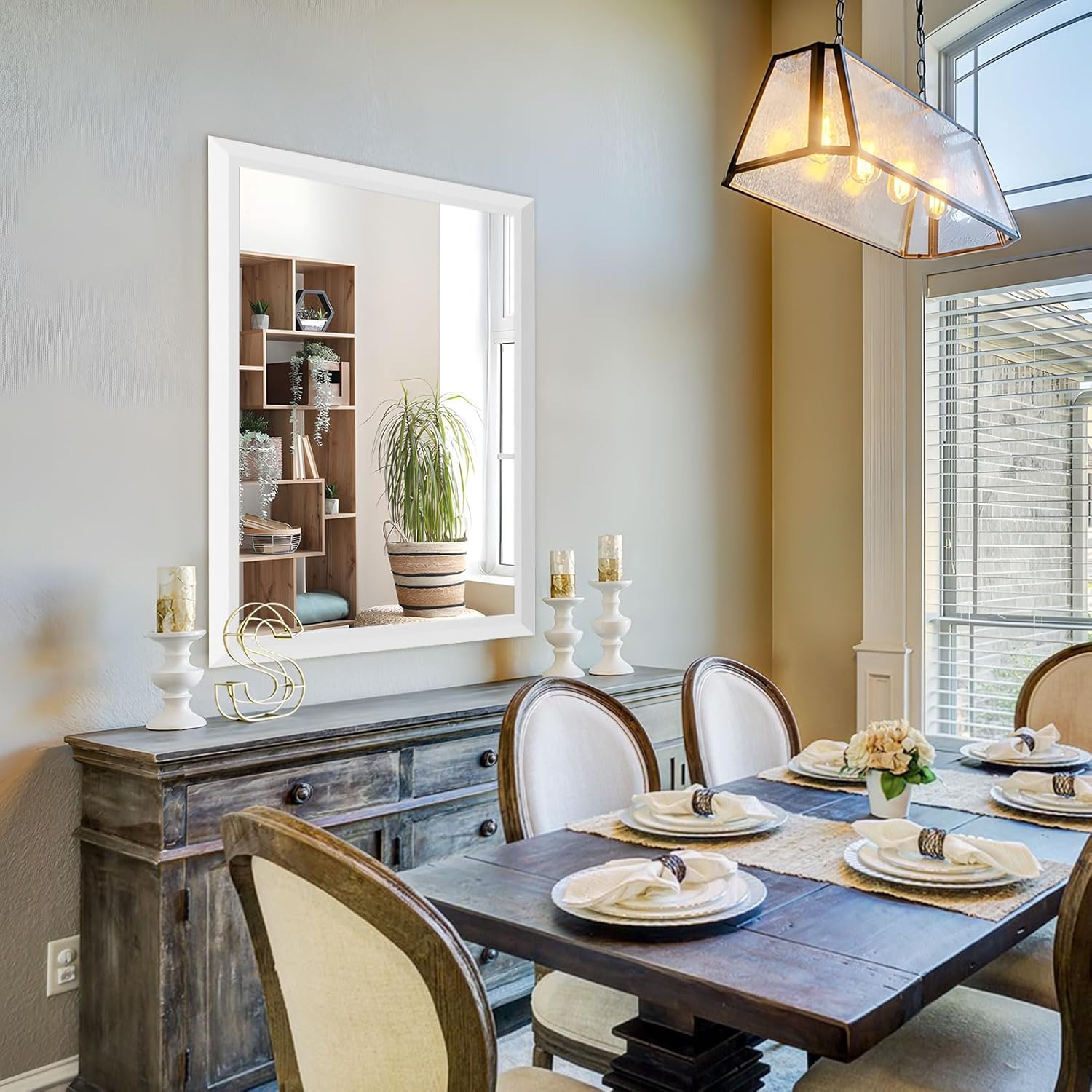 Amorho Bathroom Mirror, 40x30 Inch White Thick Metal Framed Wall Mirrors for Over Sink, Bedroom, Living Room, Entryway, Rectangle Wall-Mounted Mirrors(Horizontal/Vertical).