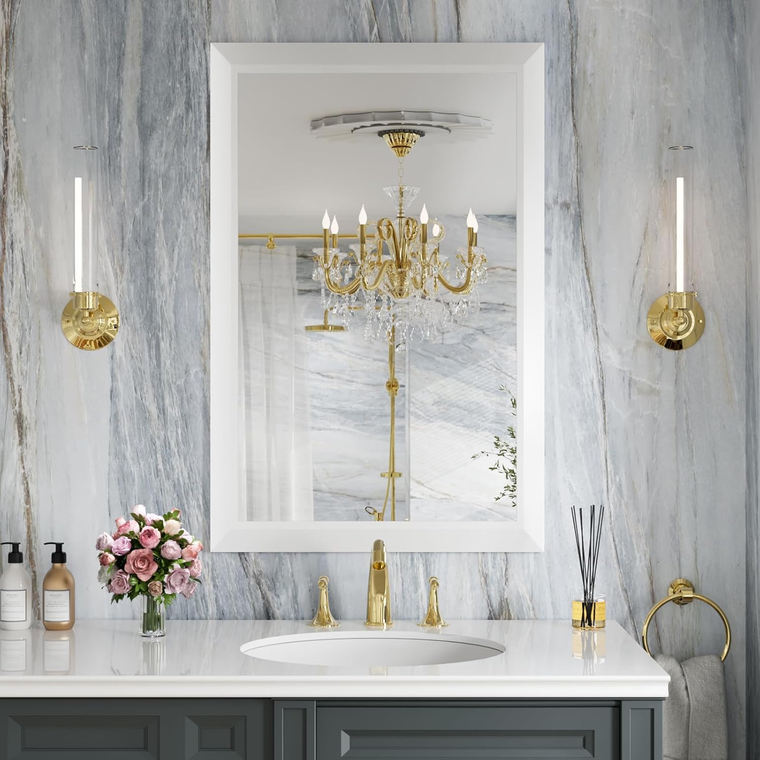 Amorho Bathroom Mirror, 24x36 Inch White Thick Metal Framed Wall Mirrors for Over Sink, Bedroom, Living Room, Entryway, Rectangle Wall-Mounted Mirrors(Horizontal/Vertical).