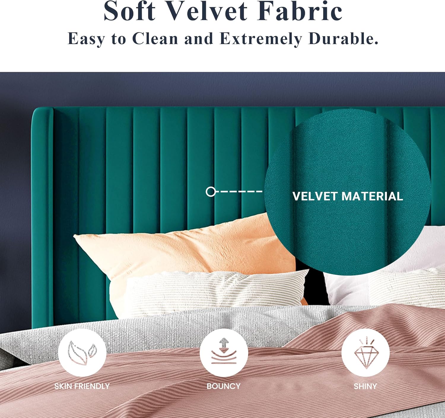 - Comfortable and Elegant: Designed in a modern wingback headboard, smooth velvet, and soft sponge wrap the entire bed frame, which will add sophisticated style to any bedroom