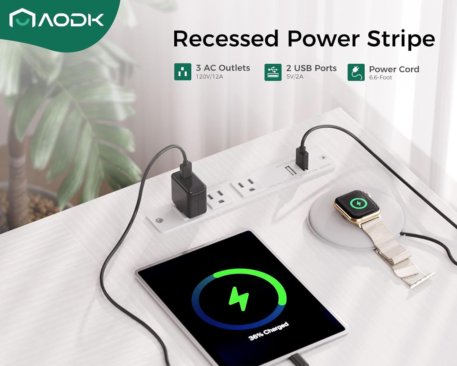 - 【Power Outlets & Charging Ports】 AODK computer desk is equipped with 3 power outlets & 2 USB charging ports for your electronic device. You can easily and conveniently charge smart phone, gaming gear and Bluetooth devices when you are working or playing games.