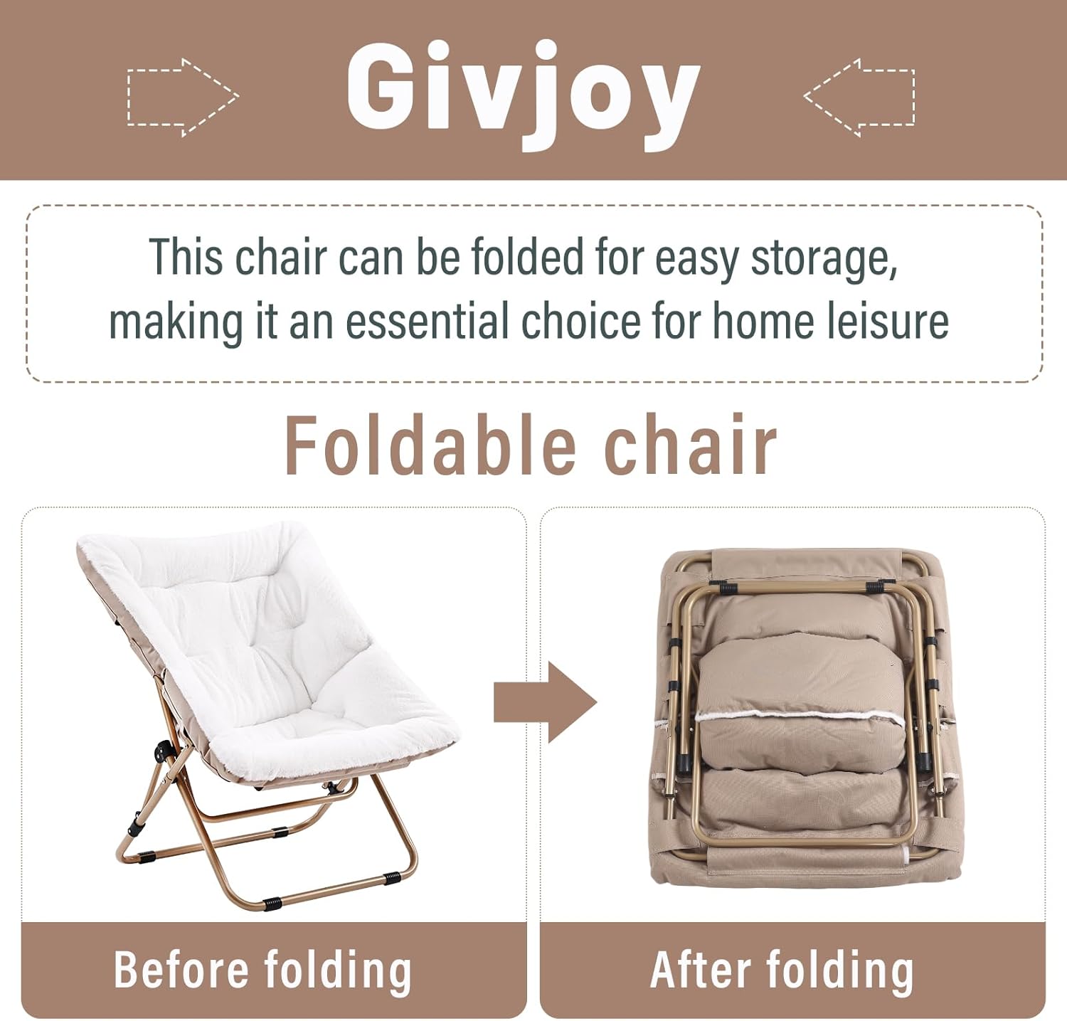 Comfy Folded Chair, Soft Faux Fur Oversized Folding Chair, Flexible Lounge Lazy for Kids Girls Teens Adults, Moon Chair for Dorm Rooms, Bedroom, Living Room