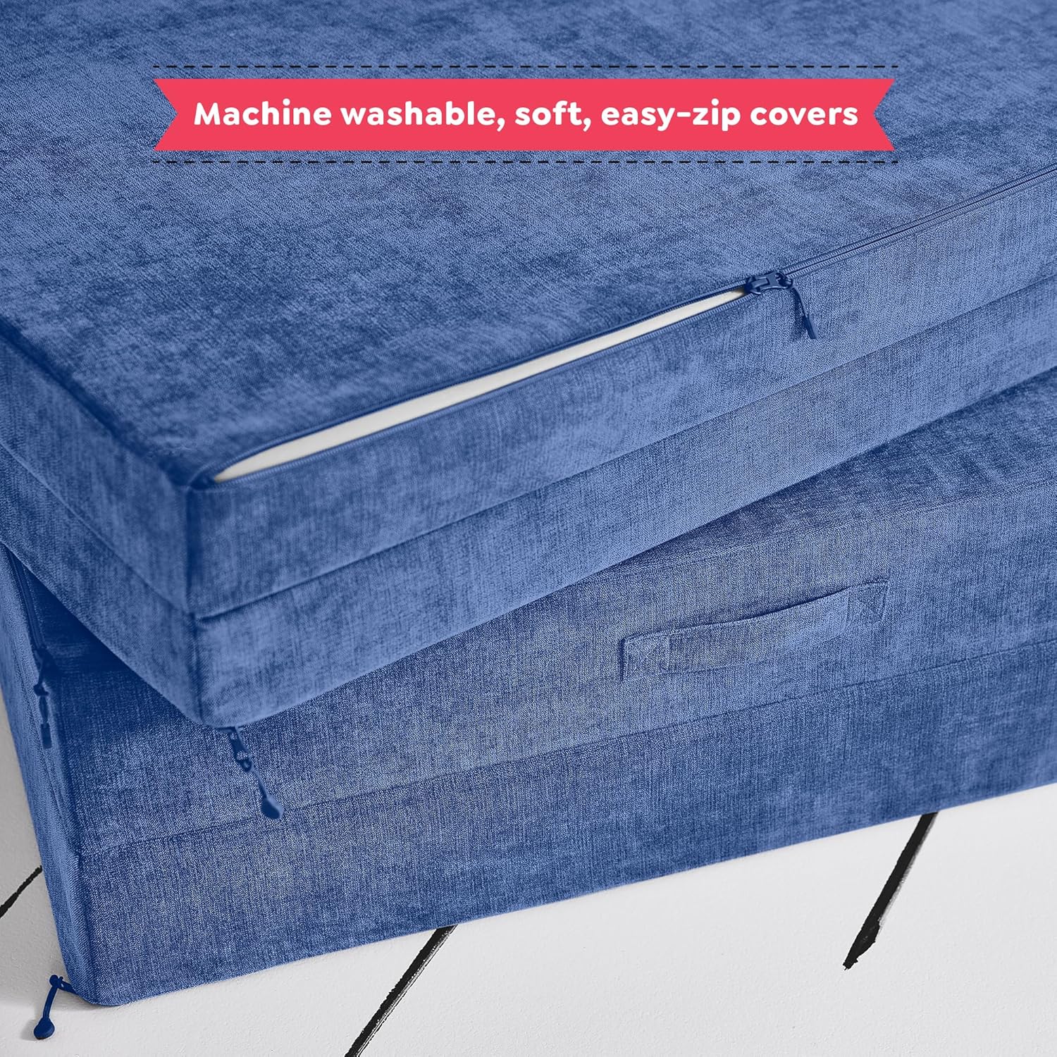 Yourigami Kids and Toddler Play Couch, Convertible Folding Sofa, Durable Foam Modular Design, Sapphire Caves XL
