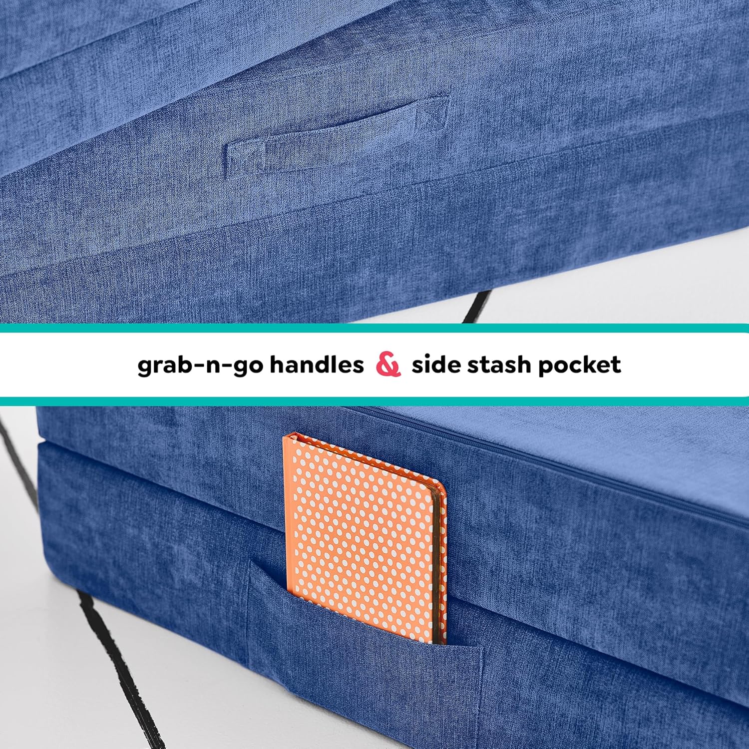 - Endless Possibilities: The YOURIGAMI Sapphire Caves Kids Play Couch comes with 4 modular pieces that can be transformed into countless imaginative shapes for rest or play; Hinged panel covers also include handles for easy moving and a stash pocket; Pair with the YOURIGAMI Play Castle for bigger deluxe configurations and even grander adventures