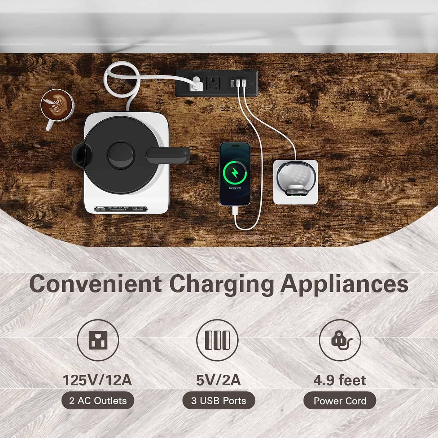 - [Convenient Charging Sockets]: The wine bar for home comes with a built-in power outlet, which features 2 AC plugs and 3 USB ports. This makes it convenient for holding kitchen appliances and connecting them easily.