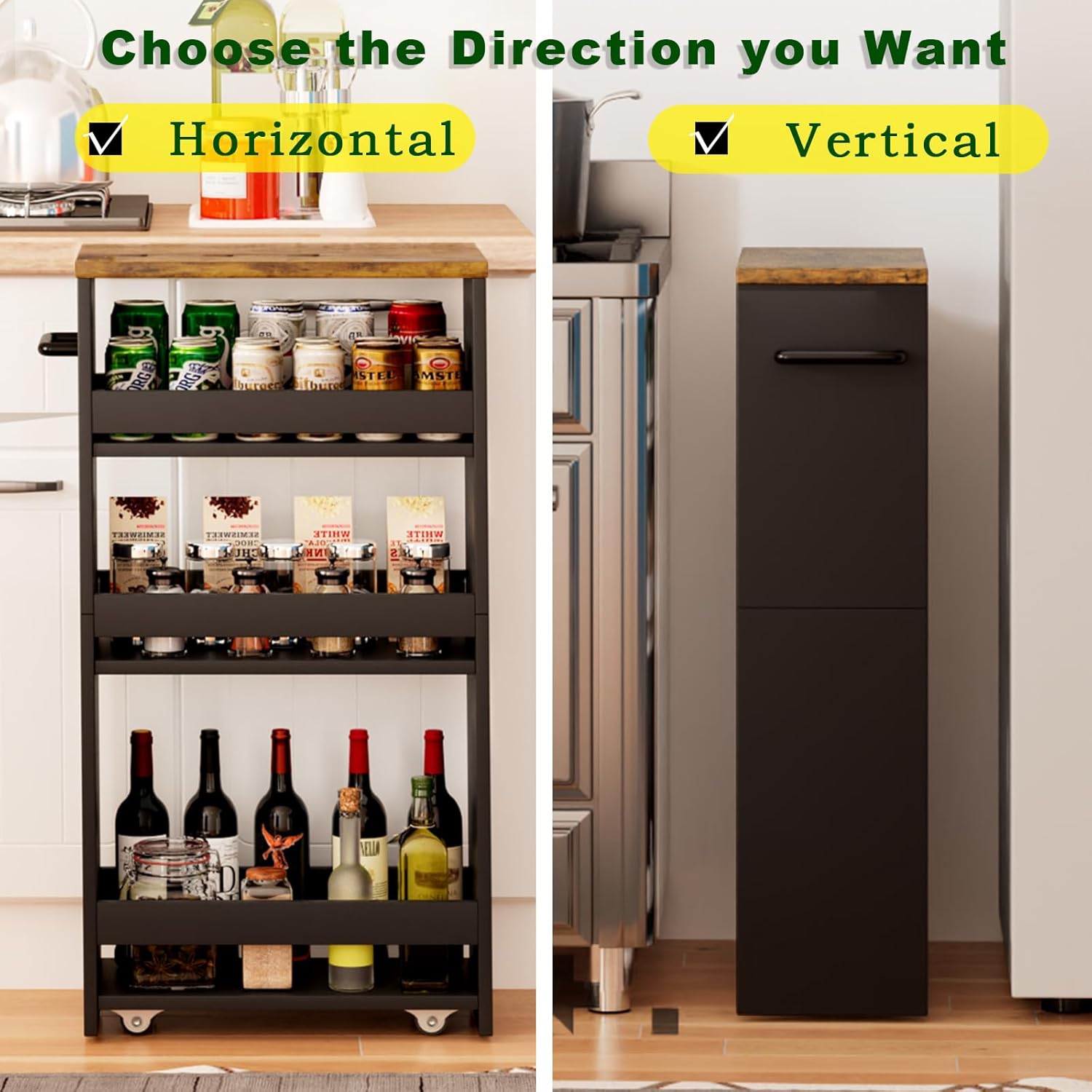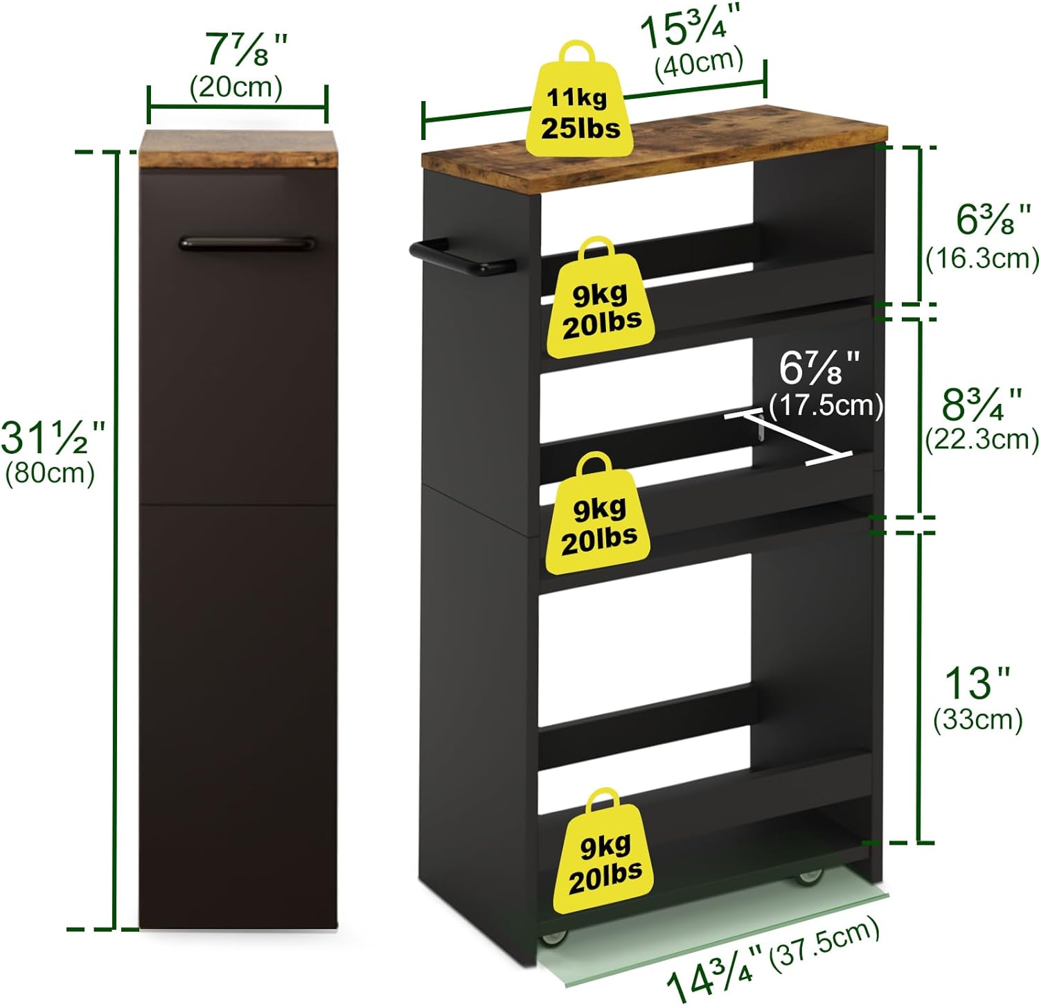 - 【Narrow Spaces Storage Design】This 4-tier storage cart is 7.9 inches wide and has plenty of storage space. It has 4 smooth wheels and 1 convenient handle. Can be used in closets, kitchens, bathrooms, garages, laundry rooms, offices, or washing machines and dryers.