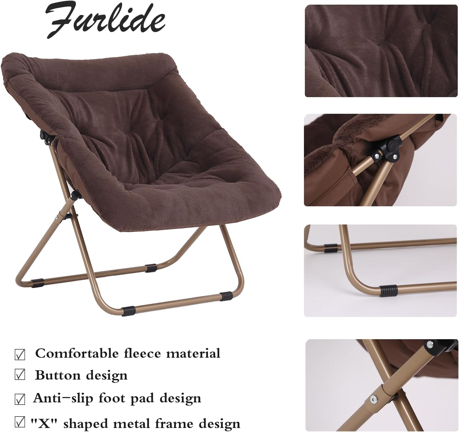 Saucer Chair, Comfy Bedroom Chairs, Oversized Folding Faux Fur Chair, Foldable Metal Frame Chair for Bedroom, Living Room, Balcony, Patio, Study, Playroom (Coffee)