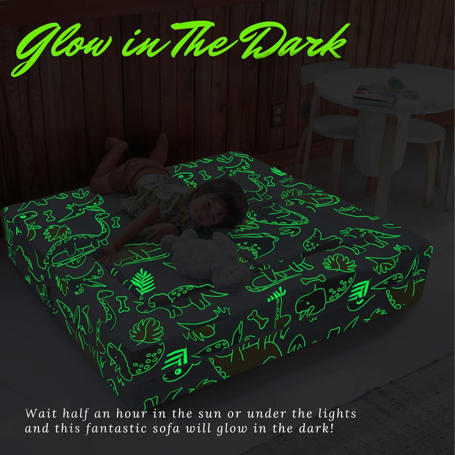 - [Unique Glow-in-the-Dark Design] Expose the couch to bright light for 10–15 minutes, then watch it glow with a magical night sky and dinosaur pattern in the dark. The brighter the light, the stronger the glow. An ideal gift for birthdays, Christmas, and baby showers.