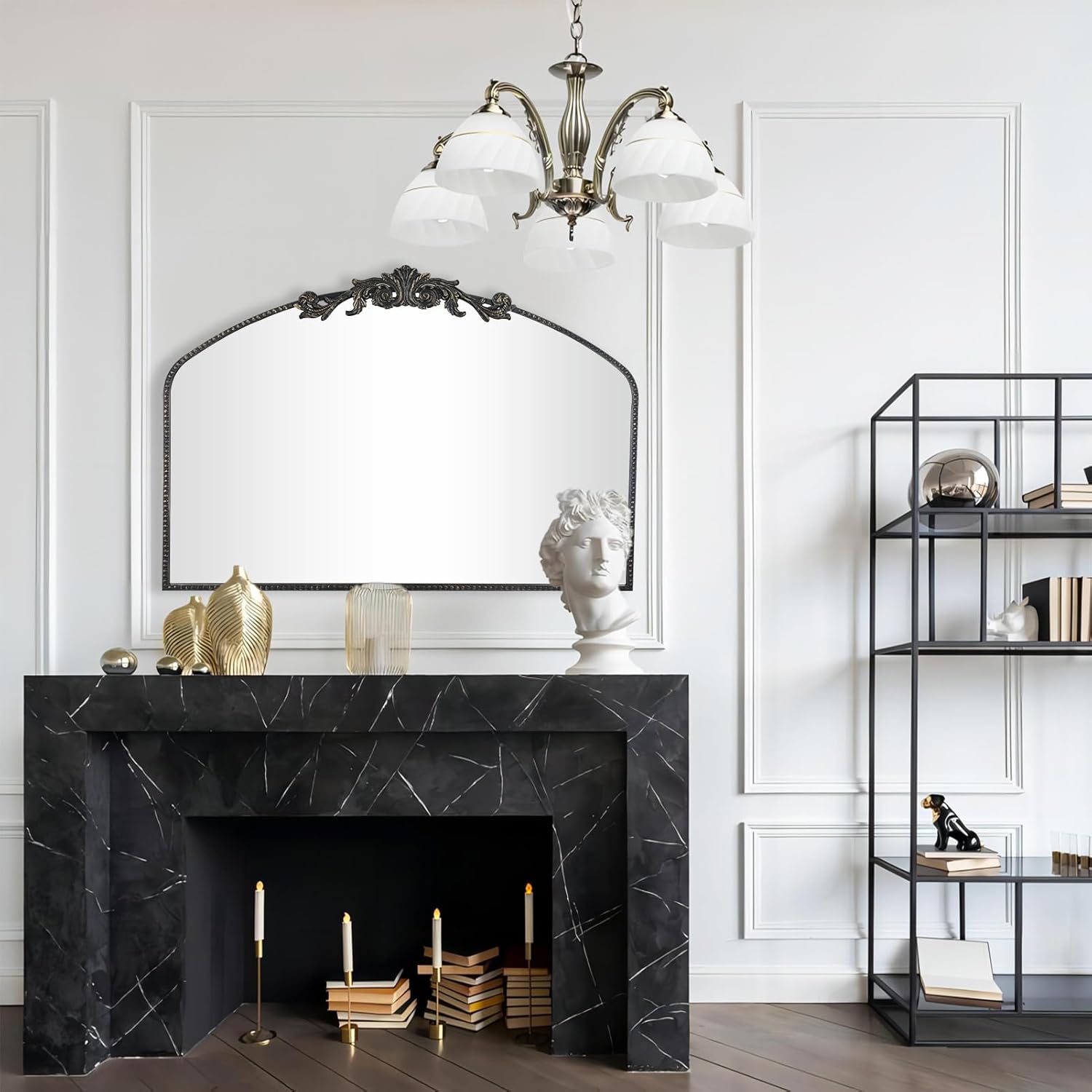 AIXI HOME Vintage Black Arched Mirror 36"X29", Antique Baroque Mantel Wall Mirror with Black Brush Gold Metal Ornate Frame for Entryway/Fireplace/Living Room/Hallway/Bathroom/Bedroom