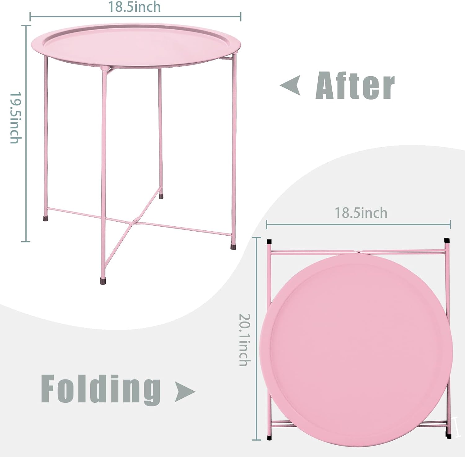 Garden 4 you End Table Set of 2, Outdoor Side Table, Small Patio Table Metal Side Table, Round Folding Side Table, for Outdoor and Living Room,Pink