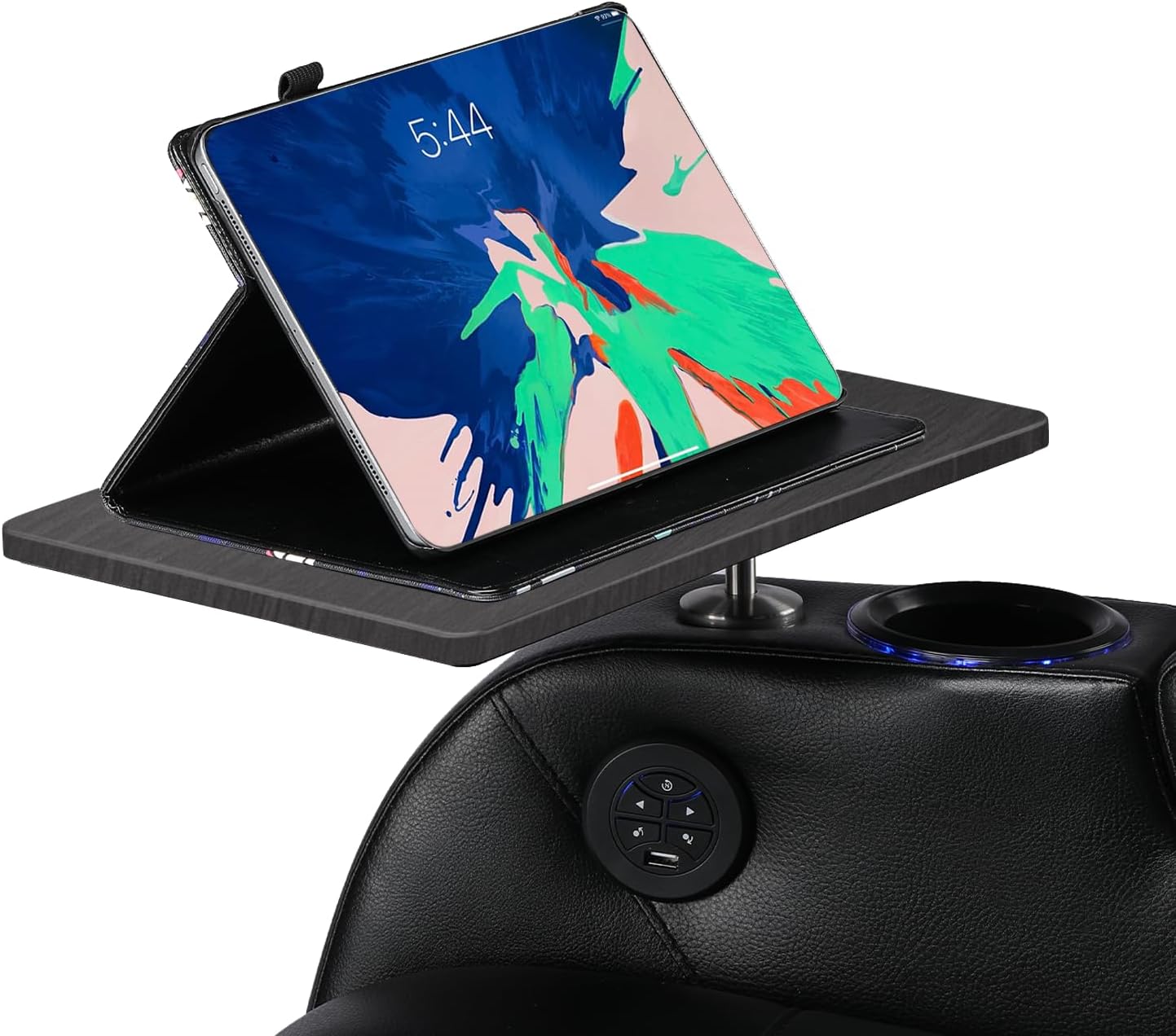 - Sleek and Space-Saving: The sleek design of the swivel tray table complements your home theater seating, adding both style and functionality. When not in use, it can be easily folded away to save space.