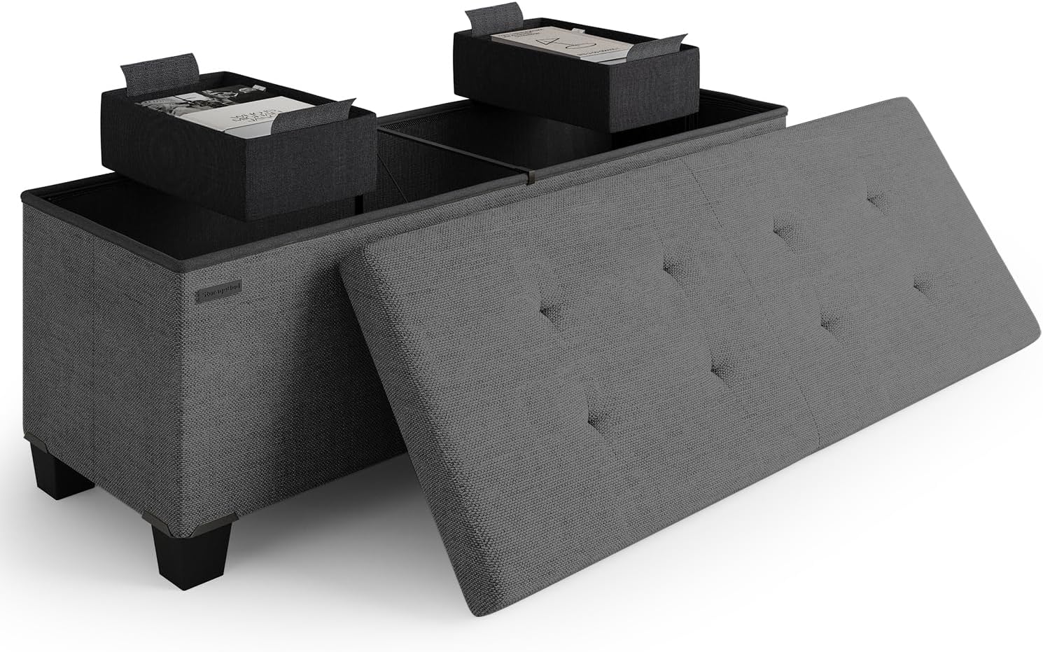 - Two Removable Storage Bins: Keep small, loose items neatly organized with easily accessible storage bins, and store bulkier items like throw blankets and pillows in the large ottoman space.