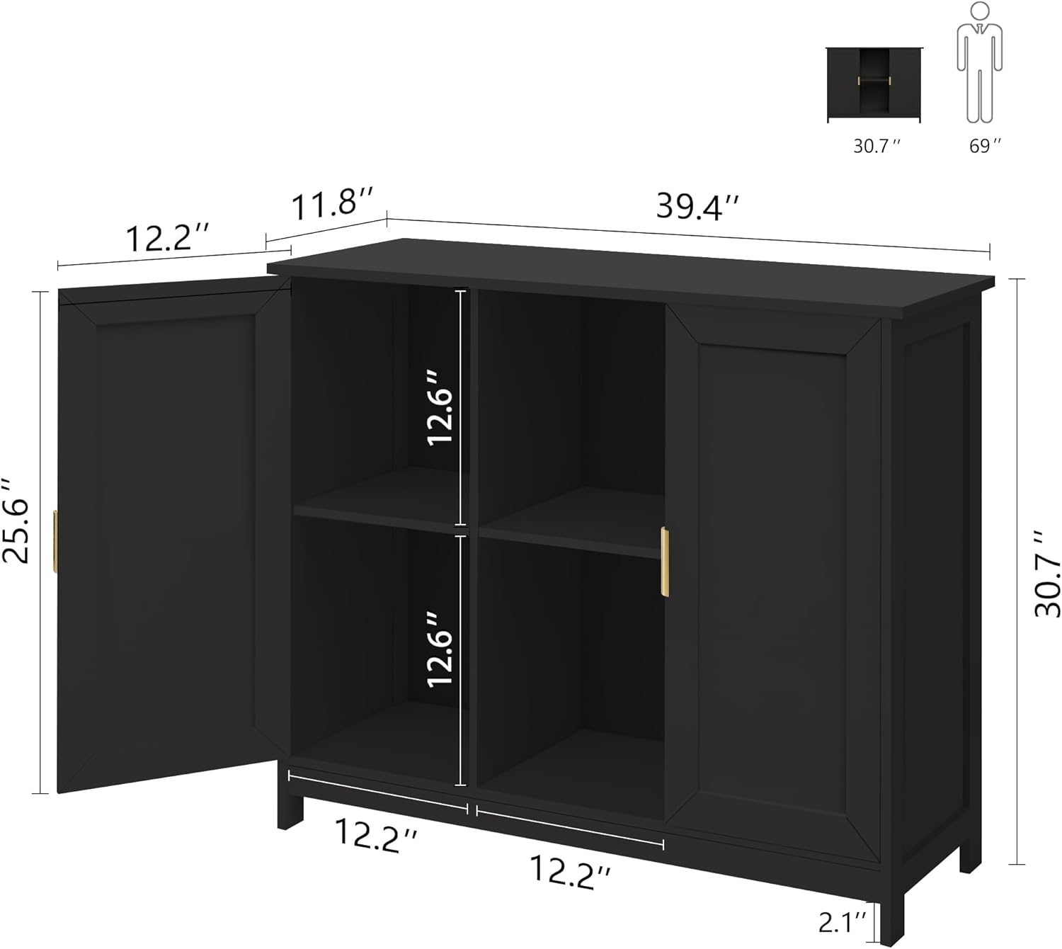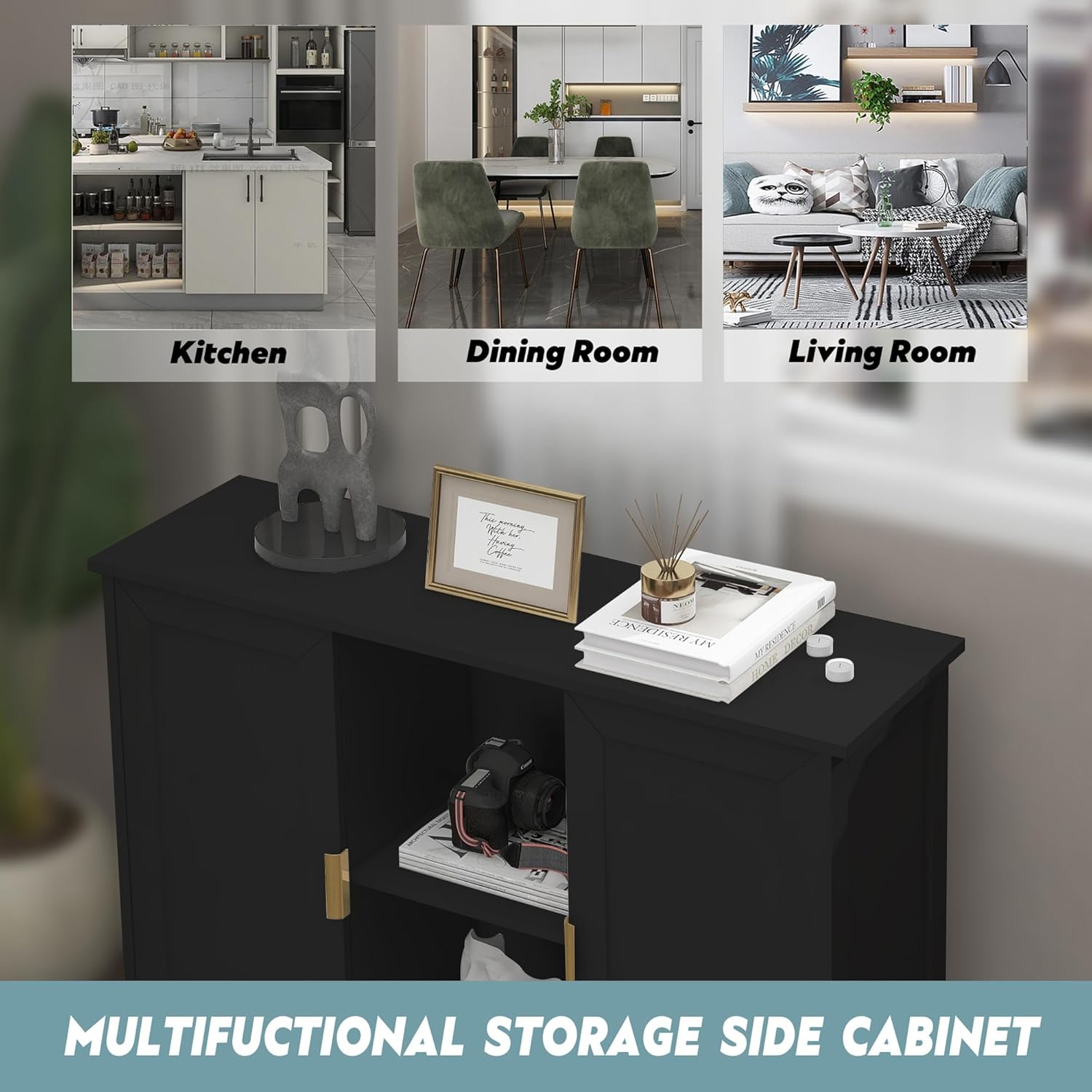 TaoHFE Black Buffet Cabinet,Modern Narrow Sideboard Buffet Cabinet Wooden Side Table with Storage,Black Accent Cabinets for Living Room