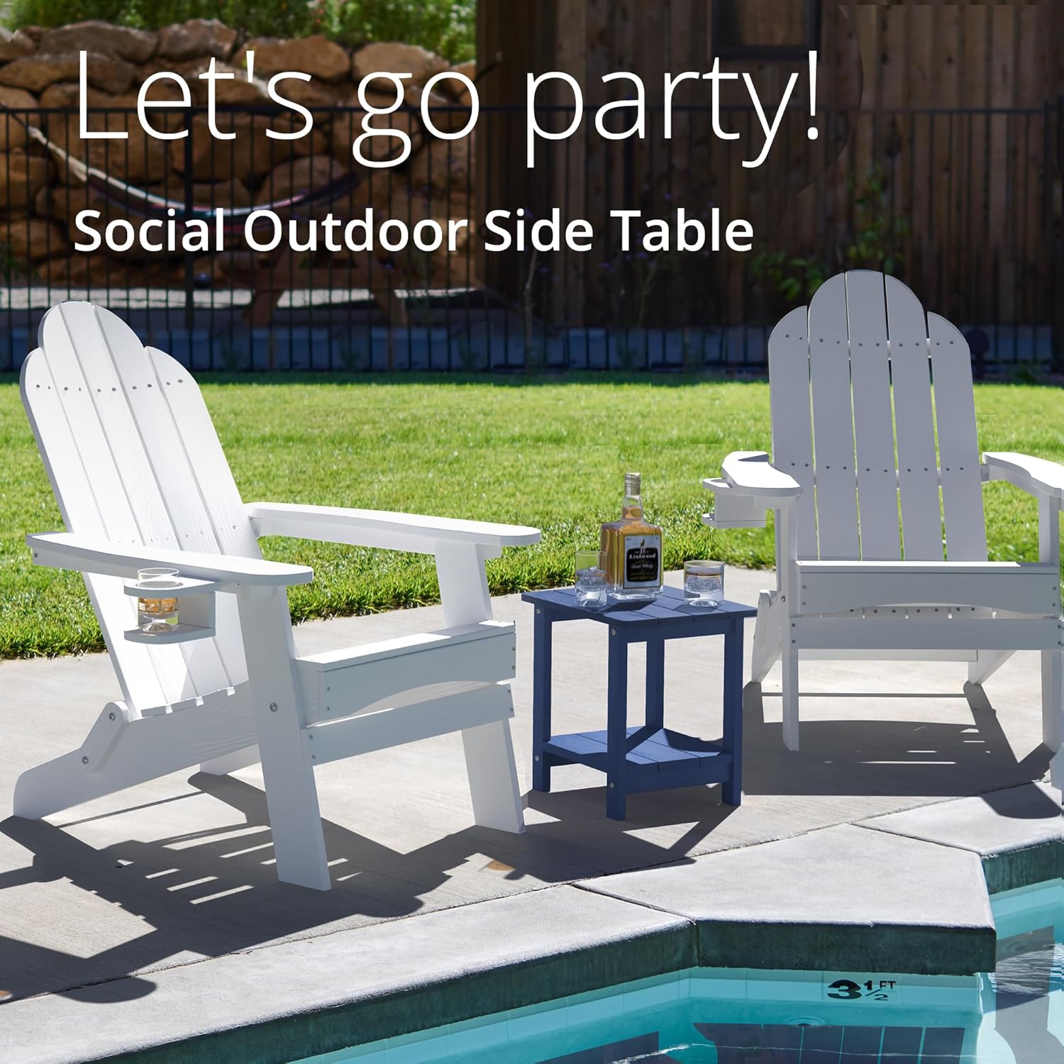 LUE BONA Adirondack Outdoor Side Table, 2-Tier Navy HDPS Patio End Table Weather Resistant, Morden Side Table for Patio, Pool, Porch