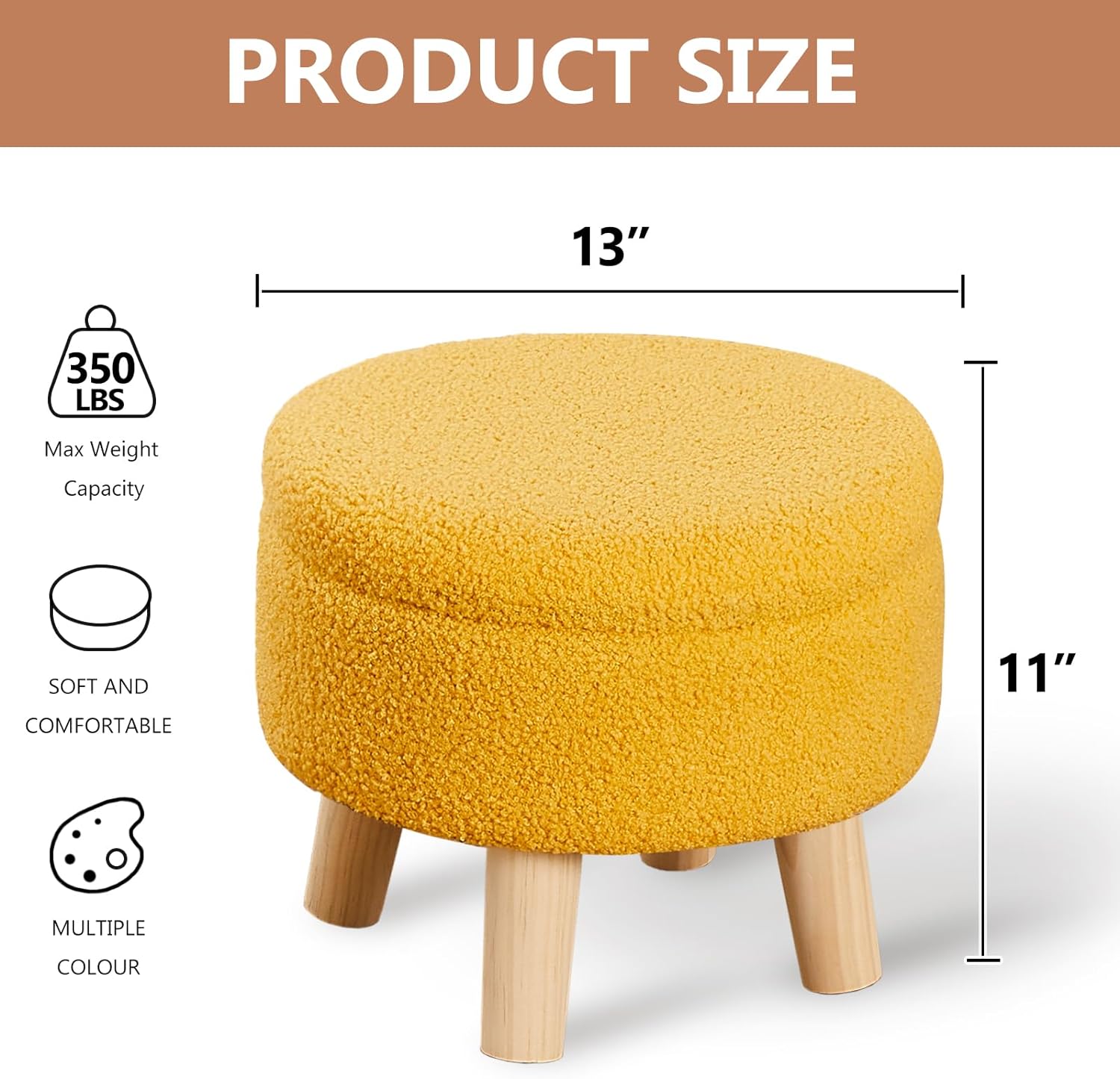 Wimarsbon Storage Ottoman, Modern Round Footrest with Soft Padded Seat, Teddy Velvet Footstool with Wood Legs, Accent Small Table or Plant Stand for Hallway, Living Room (Brilliant Yellow)