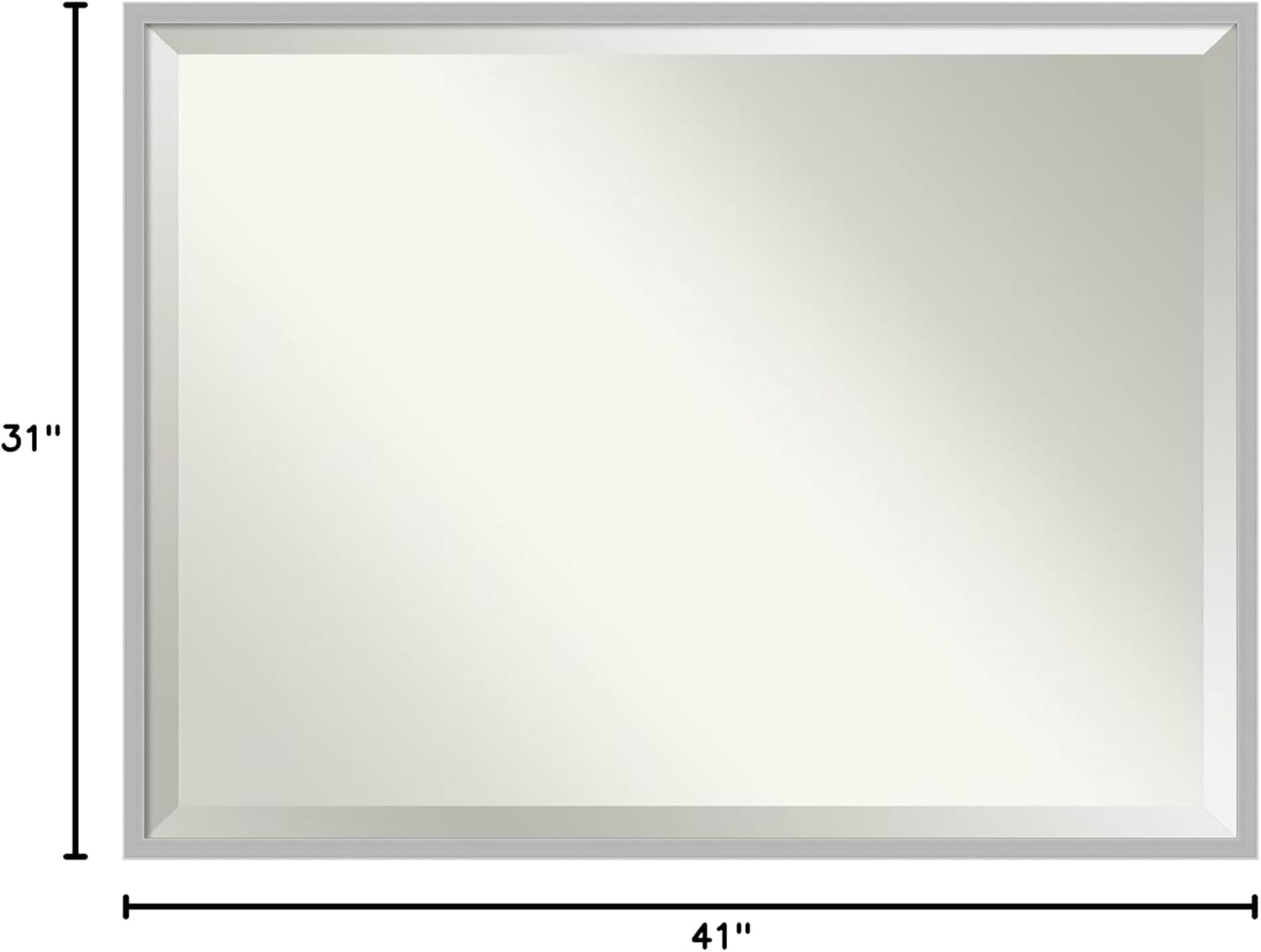 - MIRROR DETAILS: This mirror features premium glass for a clear, undistorted image and is finished with a beveled edge to give the glass a decorative touch. The overall size of this bathroom mirror measures exactly 41 x 31 inches, including the frame. Its reflective area measures 40 x 30 inches.