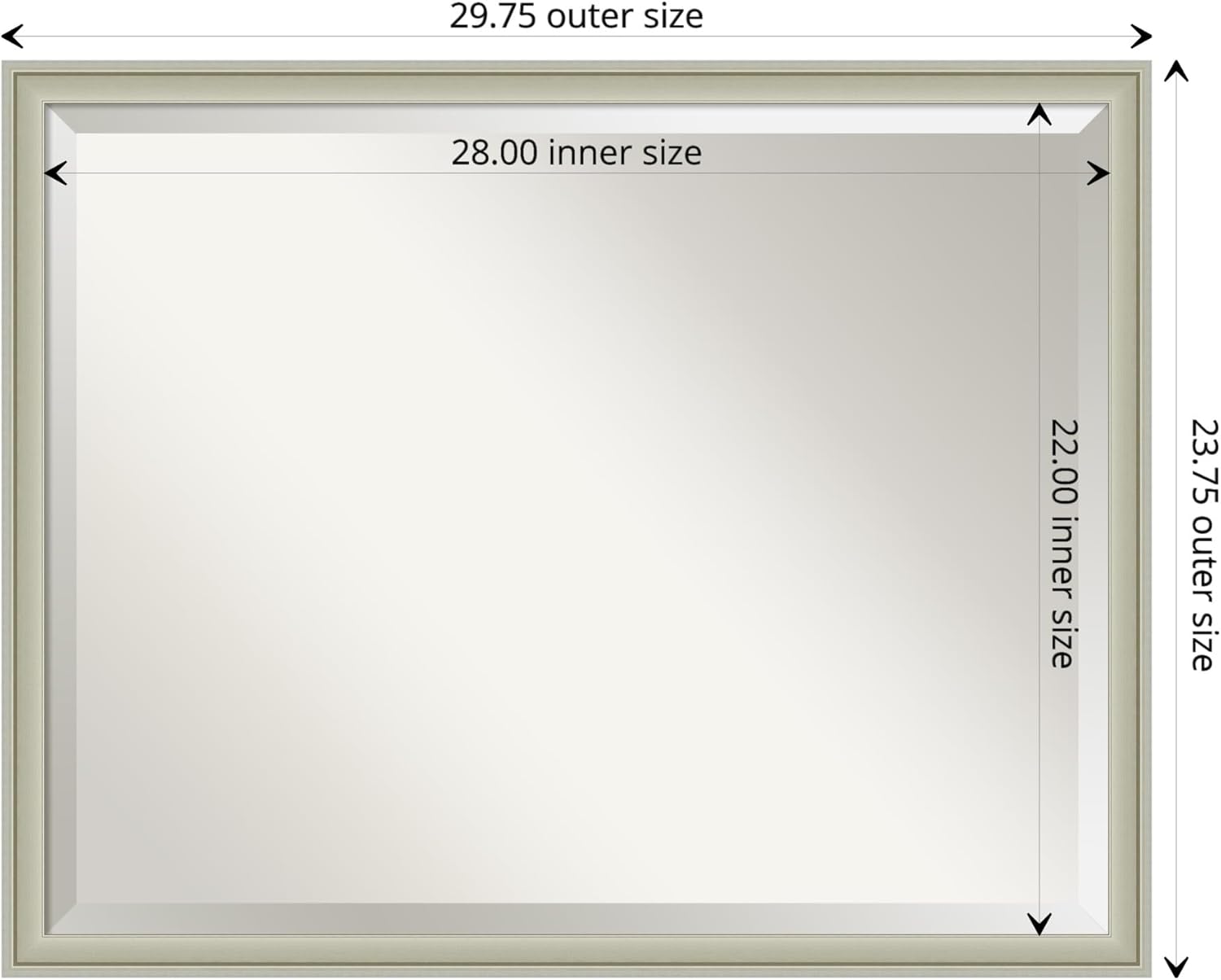 - MIRROR DETAILS: This mirror features premium glass for a clear, undistorted image and is finished with a beveled edge to give the glass a decorative touch. The overall size of this bathroom mirror measures 29.75 x 23.75 inches, including the frame. Its reflective area measures 28 x 22 inches.