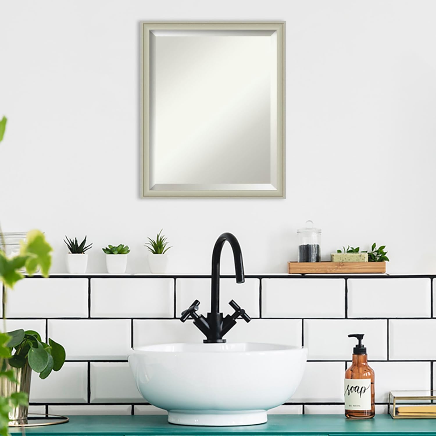 Amanti Art Silver Bathroom Mirror for Over Sink, 22x18 Florence Silver Rectangle Vanity Mirror, Small Casual Frame, Hangs Horizonally and Vertically, Bathroom Wall Decor, Beveled Edge from WI, USA