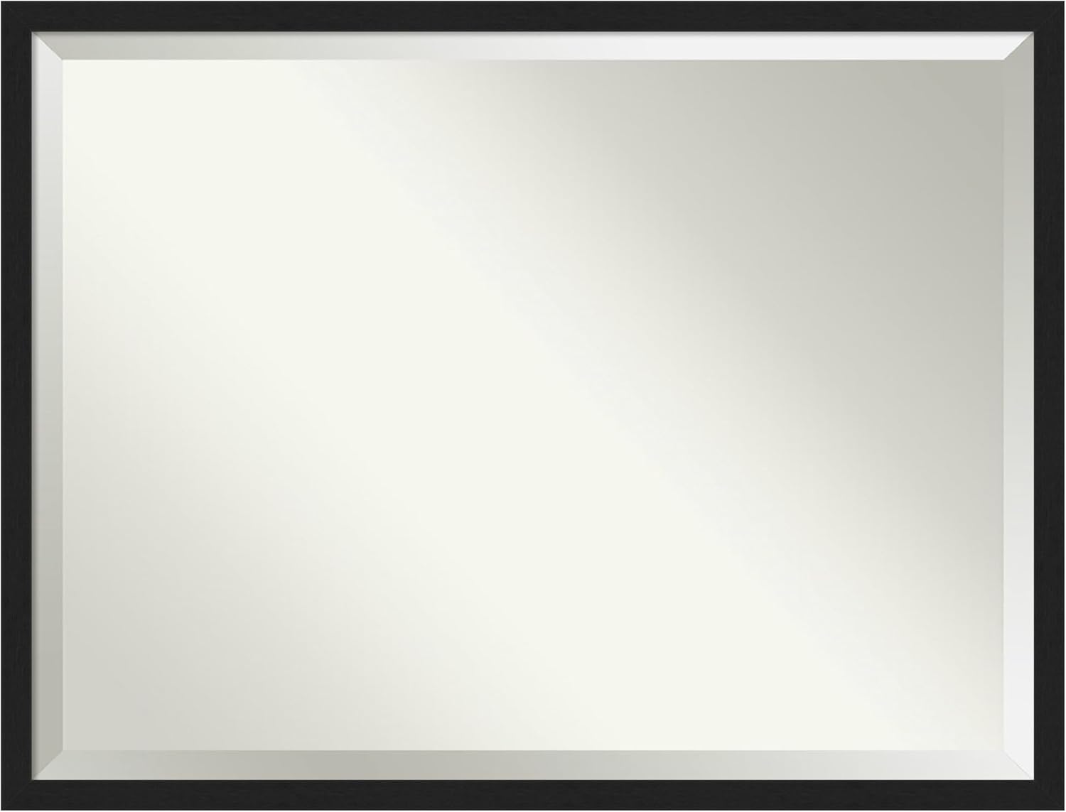 Amanti Art Black Bathroom Mirror for Over Sink, 32x42 Grace Brushed Metallic Black Narrow Rectangle Vanity Mirror, X-Large Modern Frame, Hangs Horizonally and Vertically, Bathroom Wall Decor, Beveled