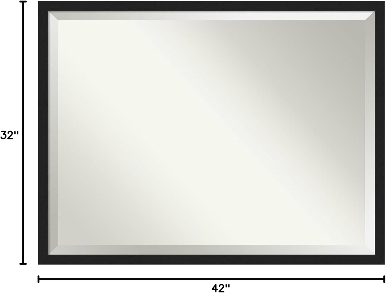 - MIRROR DETAILS: This mirror features premium glass for a clear, undistorted image and is finished with a beveled edge to give the glass a decorative touch. The overall size of this bathroom mirror measures exactly 42 x 32 inches, including the frame. Its reflective area measures 40 x 30 inches.