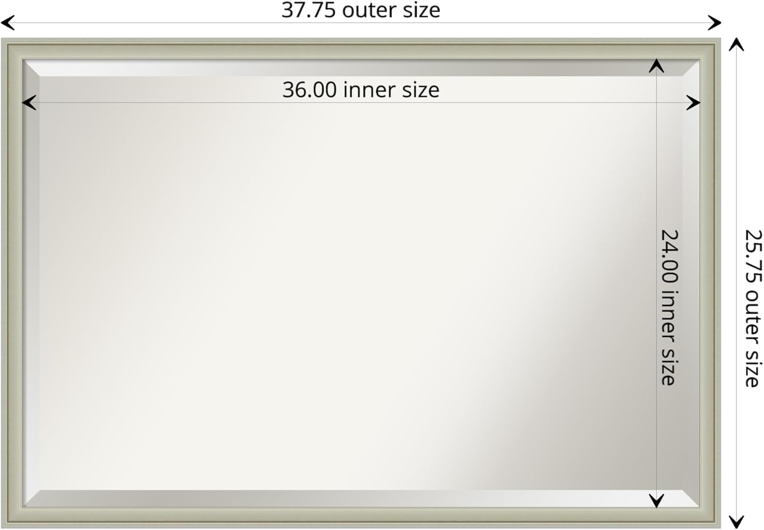 - MIRROR DETAILS: This mirror features premium glass for a clear, undistorted image and is finished with a beveled edge to give the glass a decorative touch. The overall size of this bathroom mirror measures 37.75 x 25.75 inches, including the frame. Its reflective area measures 36 x 24 inches.