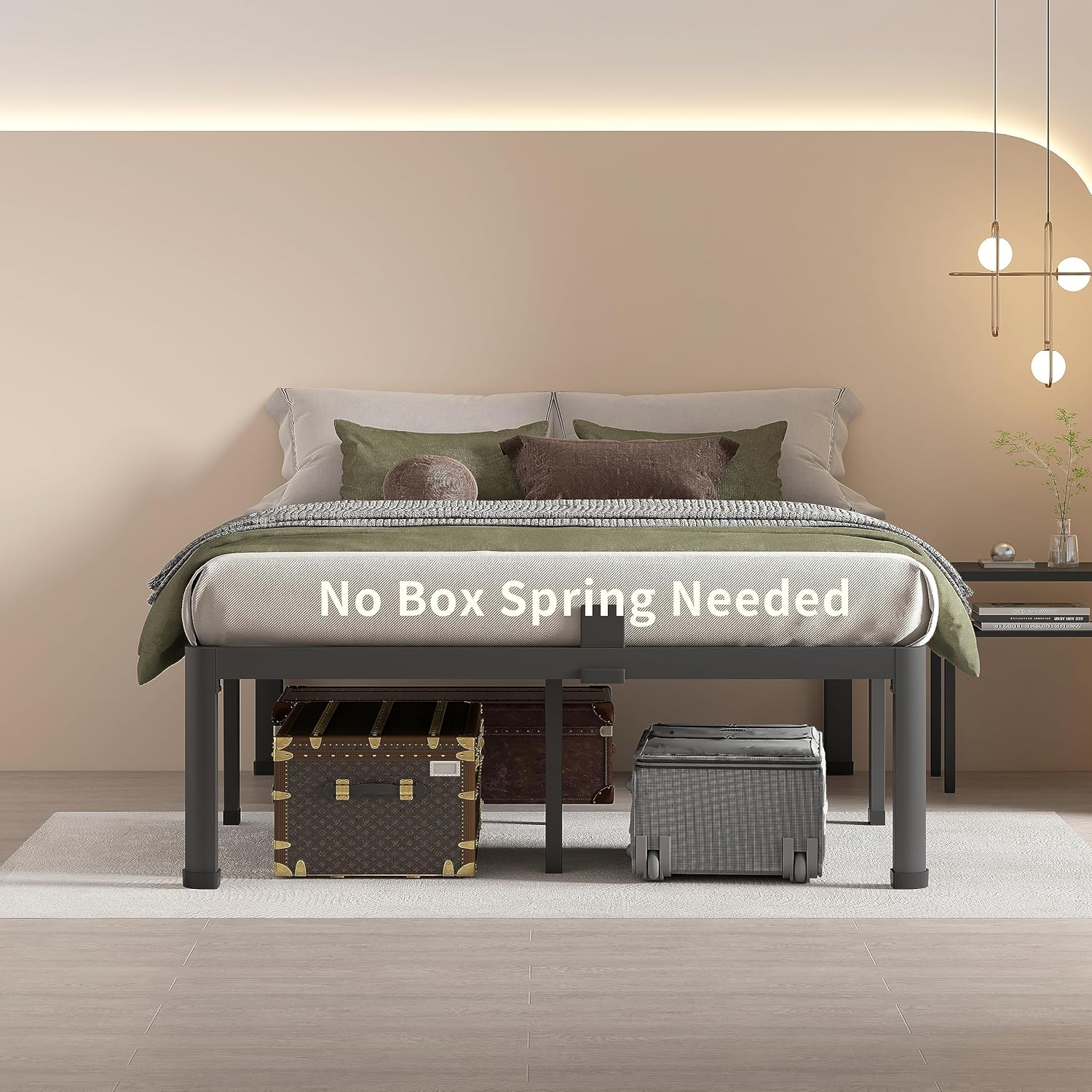 - UNDER BED STORAGE - This tall queen bed frame provides 16.4 inches of under-bed storage, easy to organize and clean, making the room cleaner and tidier. This queen size metal bed frame is suitable for bedrooms, guest rooms, dormitories, apartments, etc.