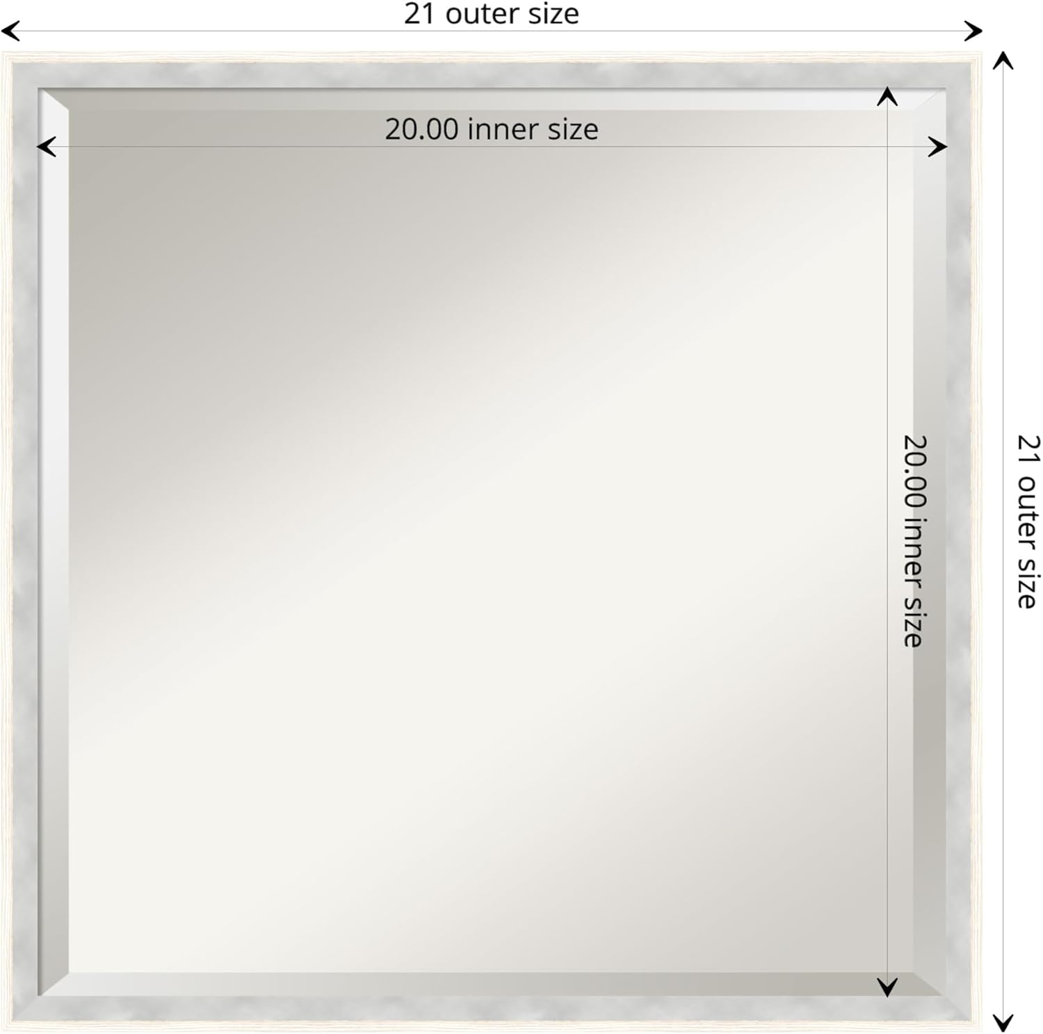 - MIRROR DETAILS: This mirror features premium glass for a clear, undistorted image and is finished with a beveled edge to give the glass a decorative touch. The overall size of this bathroom mirror measures exactly 21 x 21 inches, including the frame. Its reflective area measures 20 x 20 inches.