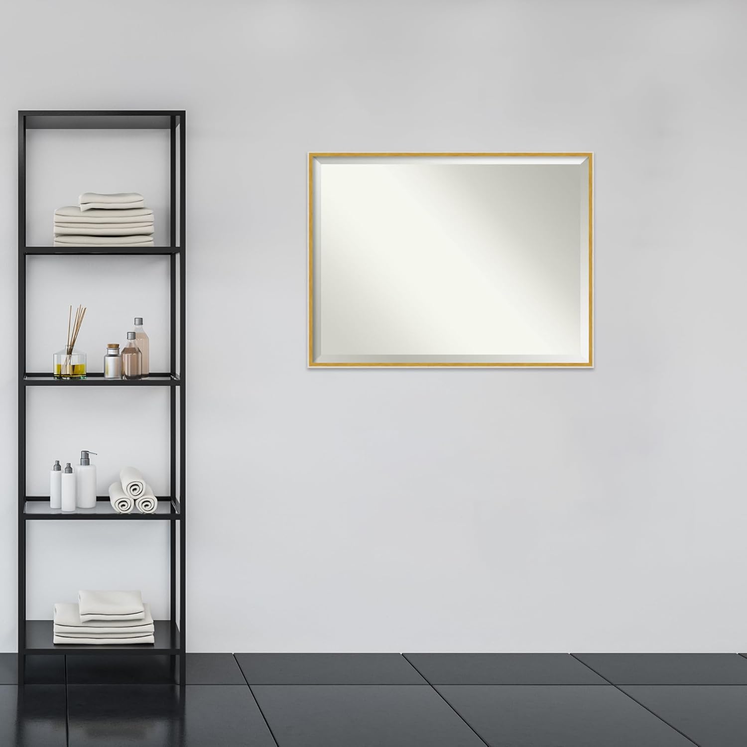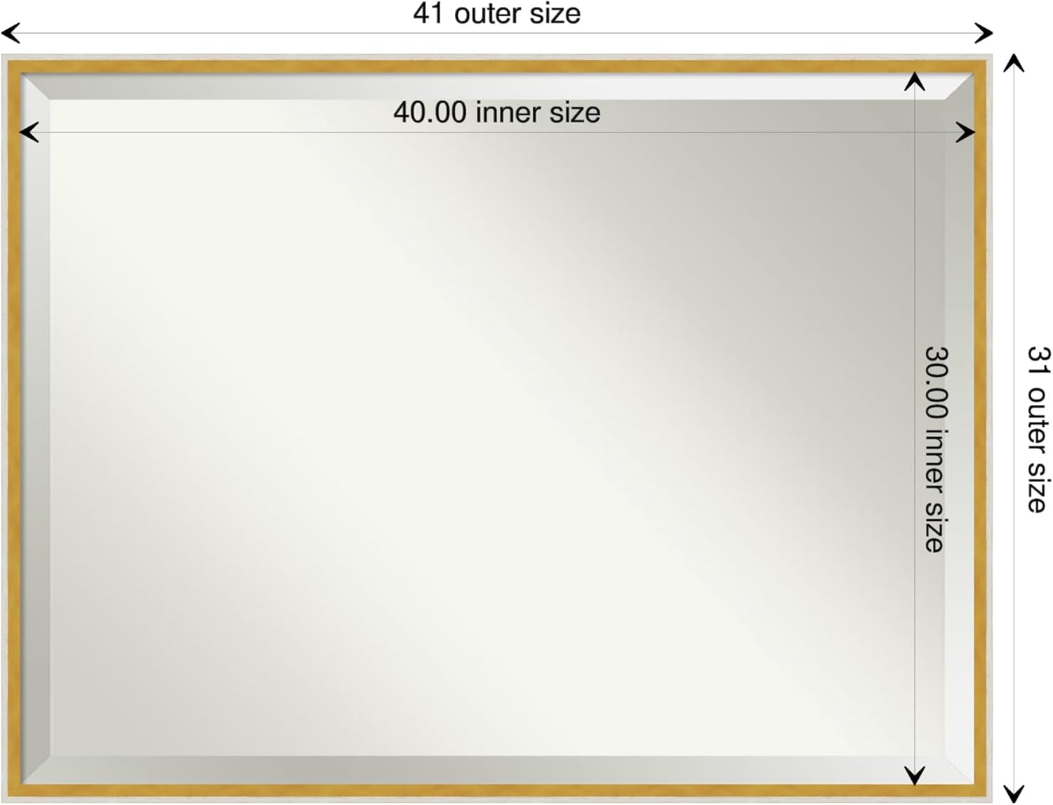 - MIRROR DETAILS: This mirror features premium glass for a clear, undistorted image and is finished with a beveled edge to give the glass a decorative touch. The overall size of this bathroom mirror measures exactly 41 x 31 inches, including the frame. Its reflective area measures 40 x 30 inches.