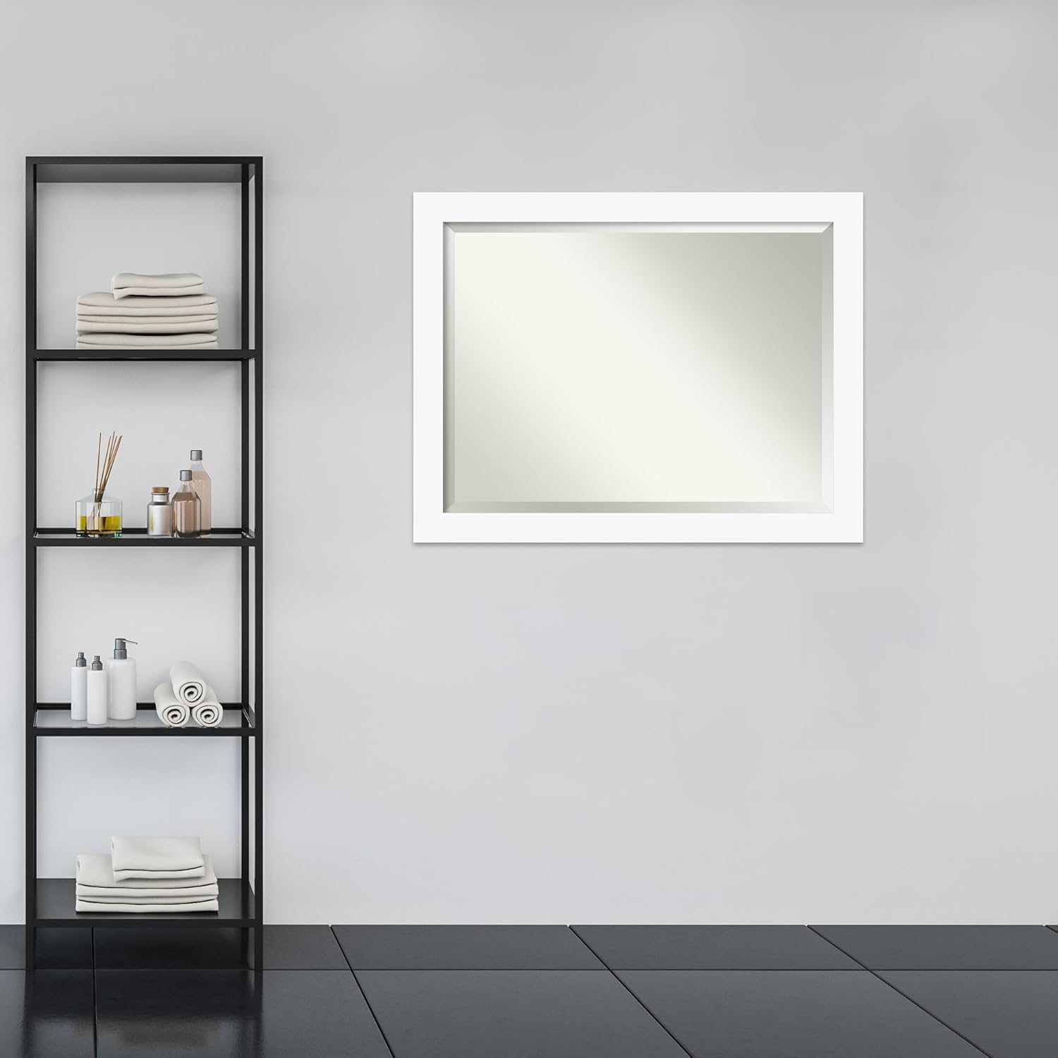 Amanti Art White Bathroom Mirror for Over Sink, 36x46 Basic White Rectangle Vanity Mirror, X-Large Casual Wood Frame, Hangs Horizonally and Vertically, Bathroom Wall Decor, Beveled Edge from WI, USA
