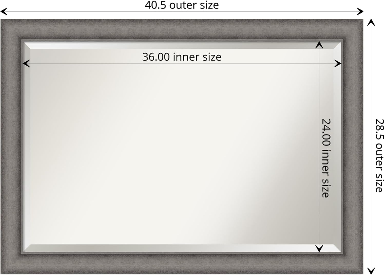 - MIRROR DETAILS: This mirror features premium glass for a clear, undistorted image and is finished with a beveled edge to give the glass a decorative touch. The overall size of this wall mirror measures exactly 40.5 x 28.5 inches, including the frame. Its reflective area measures 36 x 24 inches.