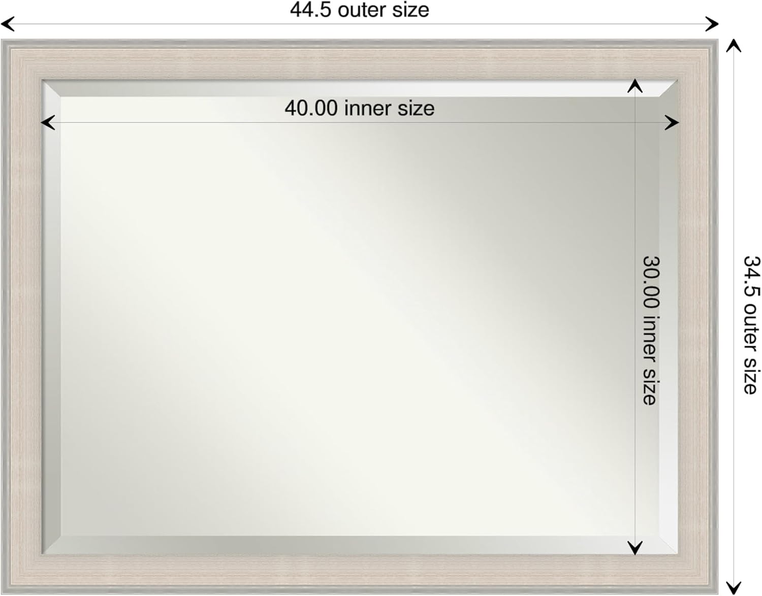 - MIRROR DETAILS: This mirror features premium glass for a clear, undistorted image and is finished with a beveled edge to give the glass a decorative touch. The overall size of this bathroom mirror measures exactly 44.5 x 34.5 inches, including the frame. Its reflective area measures 40 x 30 inches.