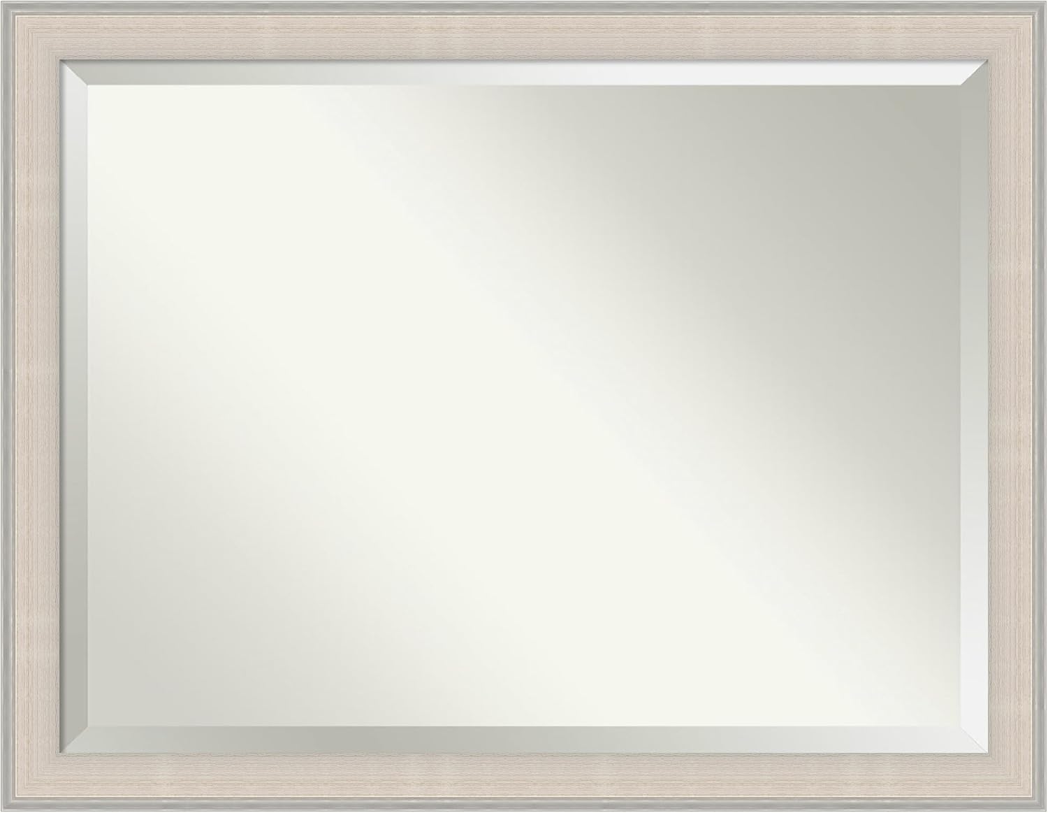 Amanti Art White Bathroom Mirror for Over Sink, 35x45 Cottage White Silver Rectangle Vanity Mirror, X-Large Coastal Wood Frame, Hangs Horizonally and Vertically, Bathroom Wall Decor, Beveled Edge