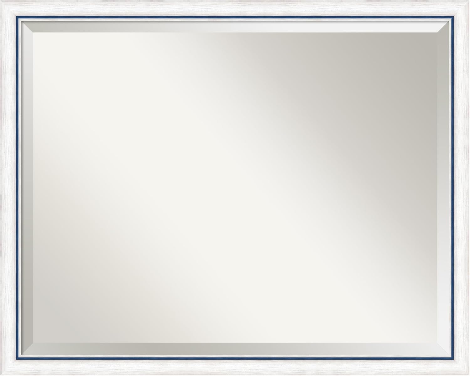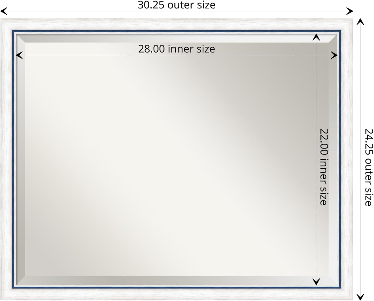 Amanti Art White Bathroom Mirror for Over Sink, 24x30 Morgan White Blue Rectangle Vanity Mirror, Large Modern Contemporary Wood Frame, Hangs Horizonally and Vertically, Bathroom Wall Decor, Beveled