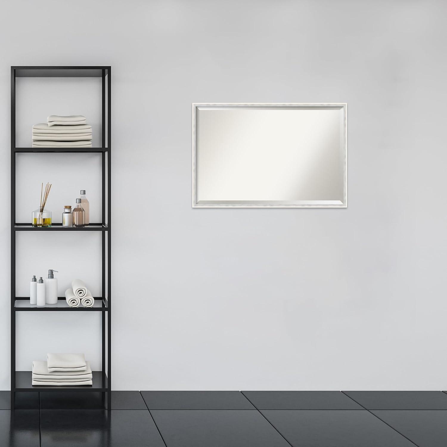 Amanti Art White Bathroom Mirror for Over Sink, 25x37 Paige White Silver Rectangle Vanity Mirror, Large Modern Contemporary Wood Frame, Hangs Horizonally and Vertically, Bathroom Wall Decor, Beveled