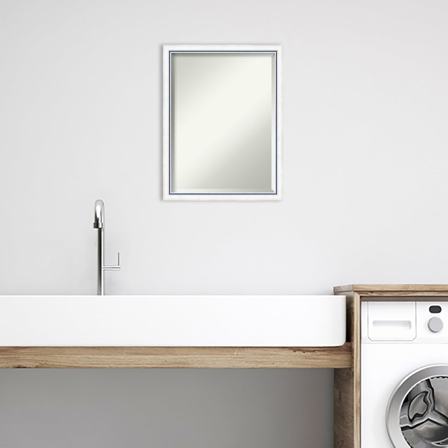 Amanti Art White Bathroom Mirror for Over Sink, 26x20 Morgan White Blue Rectangle Vanity Mirror, Medium Modern Contemporary Wood Frame, Hangs Horizonally and Vertically, Bathroom Wall Decor, Beveled
