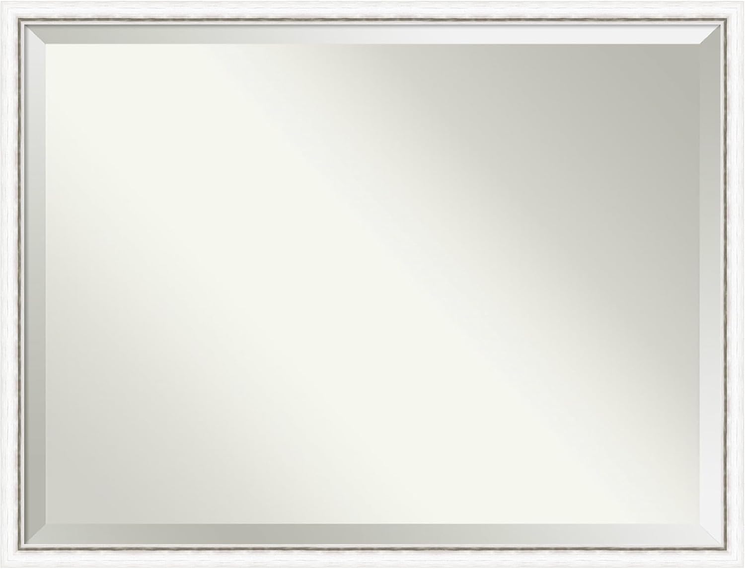 Amanti Art White Bathroom Mirror for Over Sink, 32x42 Morgan White Silver Rectangle Vanity Mirror, X-Large Modern Contemporary Wood Frame, Hangs Horizonally and Vertically, Bathroom Wall Decor from WI